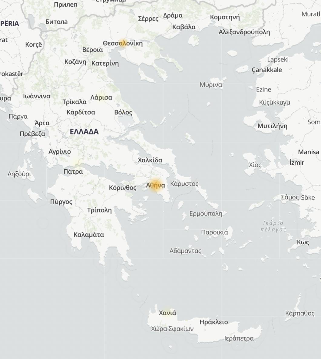 Στην εν λόγω ιστοσελίδα, βλέπουμε πως στη χώρα μας εντοπίζονται προβλήματα στην Αθήνα και τη Θεσσαλονίκη, σύμφωνα με τις αναφορές που έχουν κάνει οι χρήστες.