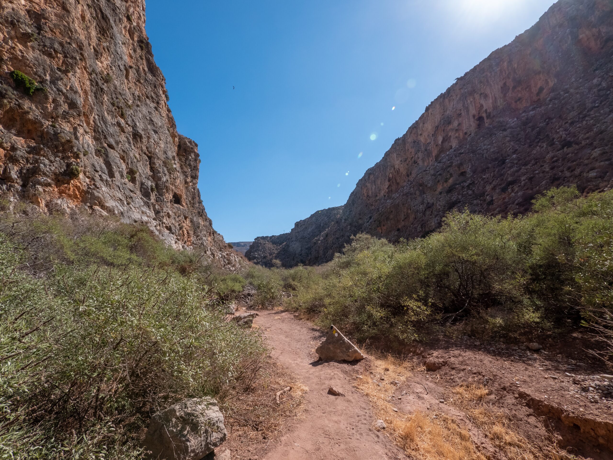 Το μονοπάτι του φαραγγιού δεν είναι ιδιαίτερα δύσκολο, ούτε έχει τεχνικά περάσματα, αλλά στην είσοδό του είναι κάπως πιο απότομα -το μόνο που χρειάζεται είναι λίγη προσοχή παραπάνω. Μόλις μπείτε στο φαράγγι, η διαδρομή είναι πολύ πιο εύκολη, οπότε είναι κατάλληλη και για εκείνους που δεν έχουν μεγάλη εμπειρία -αυτό δεν σημαίνει, όμως, ότι δεν πρέπει να προσέχετε εκεί που περπατάτε.