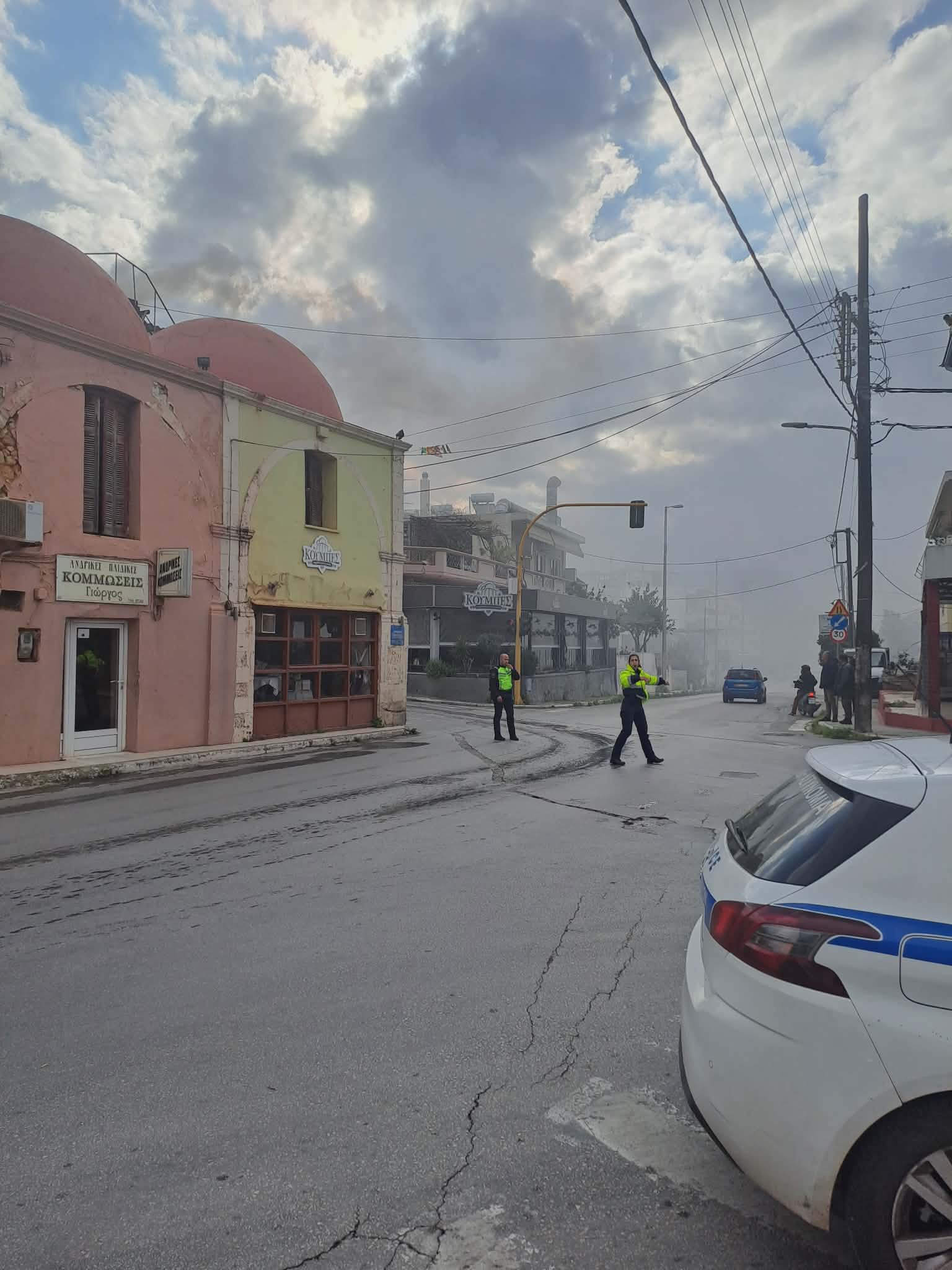 Στο σημείο έσπευσαν δύο οχήματα της ΠΥ και αστυνομία για τη ρύθμιση της κυκλοφορίας.