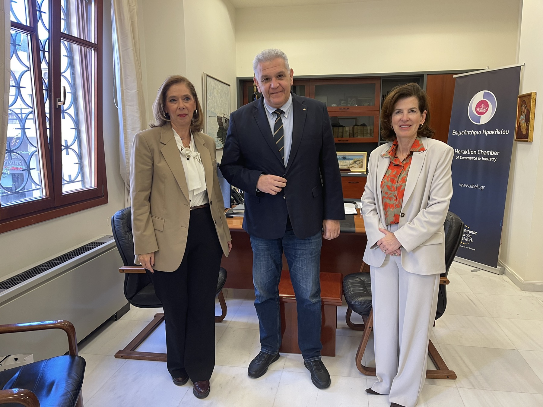 Έντονο ενδιαφέρον για συνεργασία γαλλικών επιχειρήσεων με καινοτόμες και νεοφυείς επιχειρήσεις τεχνολογίας της Κρήτης εκδήλωσε η Πρέσβειρα της Γαλλίας στην Αθήνα κα Laurence Auer κατά τη συνάντησή της με τον Πρόεδρο του Επιμελητηρίου Ηρακλείου κ. Βαγγέλη Καρκανάκη.