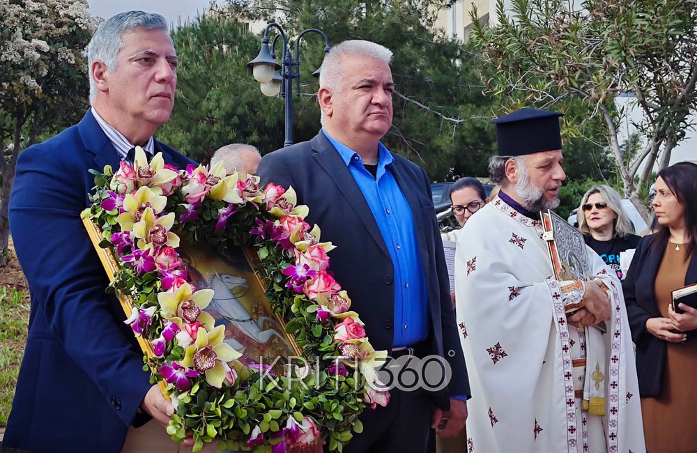 Με ιδιαίτερη λαμπρότητα γιορτάστηκε σήμερα στον χώρο του Γενικού Νοσοκομείου Χανίων «Ο Άγιος Γεώργιος» η μνήμη του προστάτη του, Αγίου Γεωργίου του Τροπαιοφόρου, με τη συμμετοχή της διοίκησης, ιατρικού και νοσηλευτικού προσωπικού, εργαζομένων, ασθενών και πολιτών.