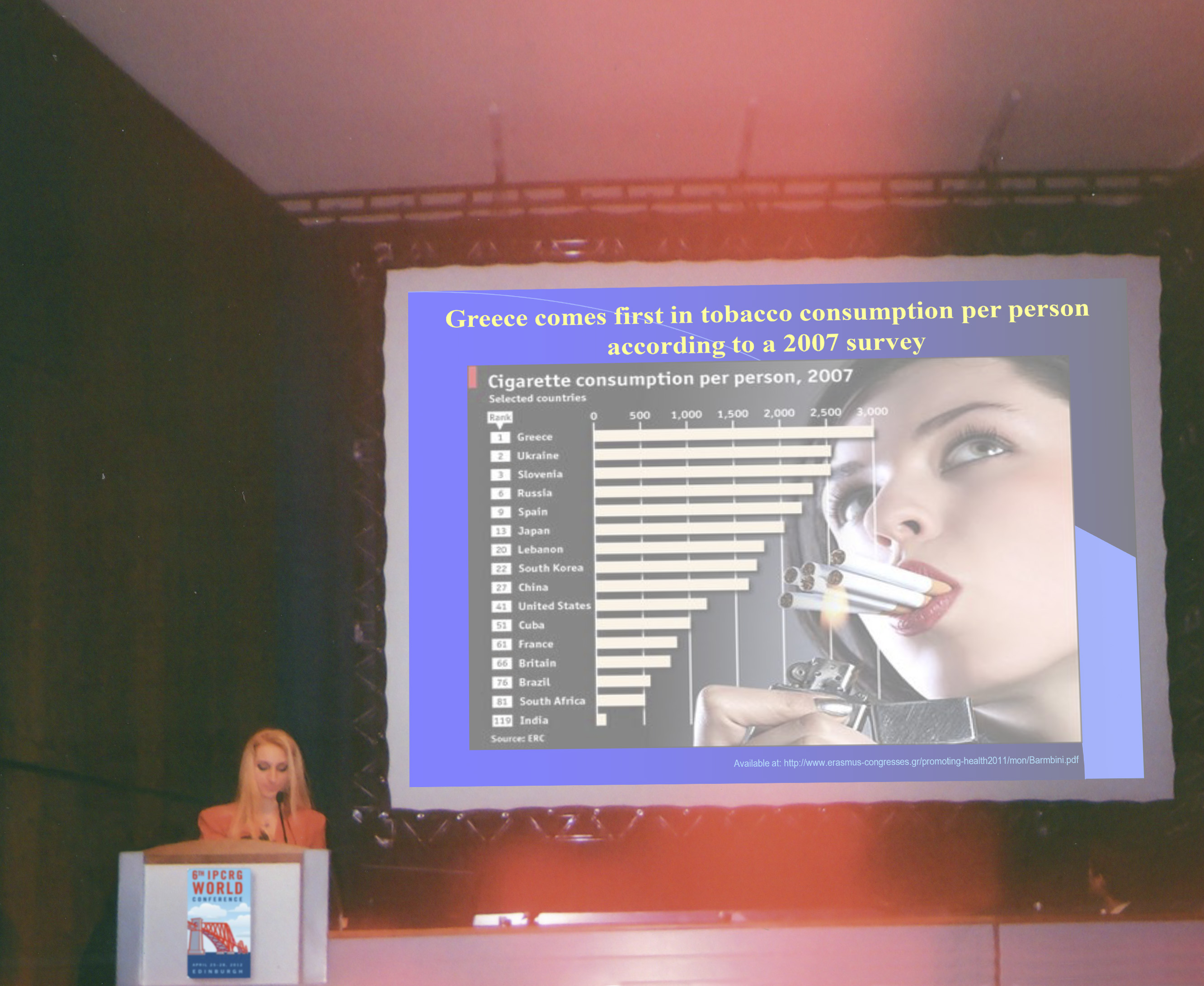 6. Σταματοπούλου Ελένη. Επιπτώσεις του καπνίσματος στη Δημόσια υγεία. Στρογγυλή Τράπεζα. Διαχείριση και Έλεγχος Μείζονων Παραγόντων Κινδύνου για την Υγεία 11ο Πανελλήνιο Συνέδριο για τη Διοίκηση, τα Οικονομικά και τις Πολιτικές της Υγείας Αθήνα, 10-12 Δεκεμβρίου 2015.
