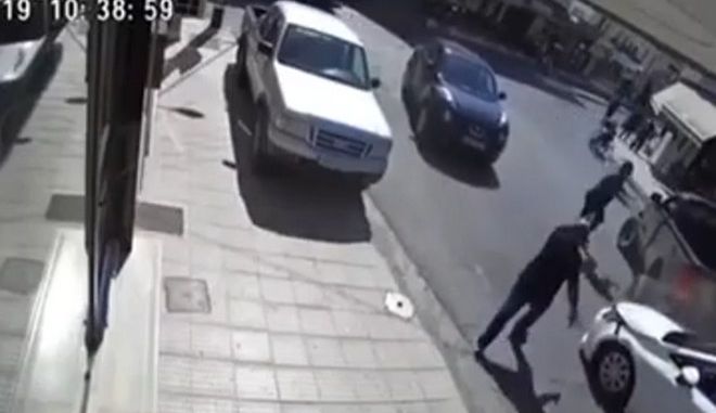 Οι Γερμανοί μπήκαν στο αυτοκίνητο, προσπάθησαν να διαφύγουν και το αγροτικό τούς καταδίωξε χτυπώντας τους από πίσω για να τους βγάλει από το οδόστρωμα. Στον κεντρικό δρόμο του Περάματος το αγροτικό τούς προσπέρασε και τους χτύπησε ορμητικά με την όπισθεν. Κάμερα ασφαλείας δικηγορικού γραφείου κατέγραψε τη στιγμή. Στο ίδιο βίντεο φαίνεται πως όλα έληξαν με την άμεση παρέμβαση εννέα ντόπιων.