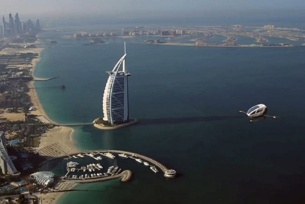 Το ηλεκτρικό χόβερ-τάξι EHang 184, όπως λέγεται, είναι κινεζικής κατασκευής και σε αυτή τη φάση δοκιμάζεται στην αραβική πόλη από την αρμόδια Αρχή των μεταφορών, με στόχο να είναι λειτουργικό έως τον Ιούλιο και να αποσυμφορήσει σταδιακά την κυκλοφορία στο κέντρο της πόλης.