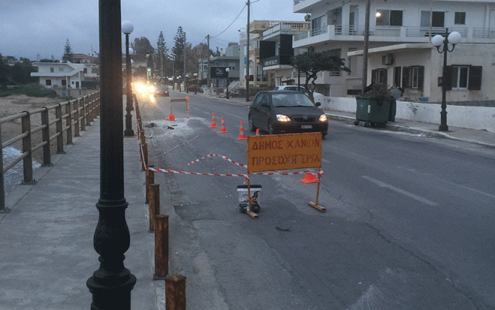 Σε όποιαν Τεχνική Υπηρεσία κι αν ανήκει η αρμοδιότητα για τη συντήρηση της Εθνικής Οδού στο συγκεκριμένο σημείο, είτε δηλαδή προφανώς στην Περιφέρεια Κρήτης, είτε εκ… παραδρομής στο Δήμο Χανίων, το θέμα είναι άλλο, η άμεση αποκατάσταση της ζημιάς που έχει προκληθεί, πριν να είναι πολύ – εγκληματικά  αργά…