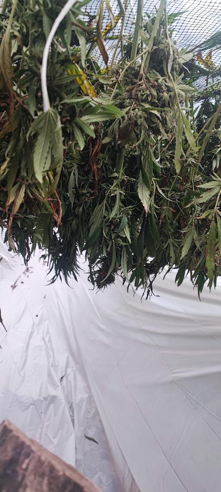 Επιπλέον εντοπίσθηκε ειδικά διαμορφωμένος χώρος αποξήρανσης ακατέργαστης κάνναβης και ακολούθησαν έρευνες στις οικίες τους.
