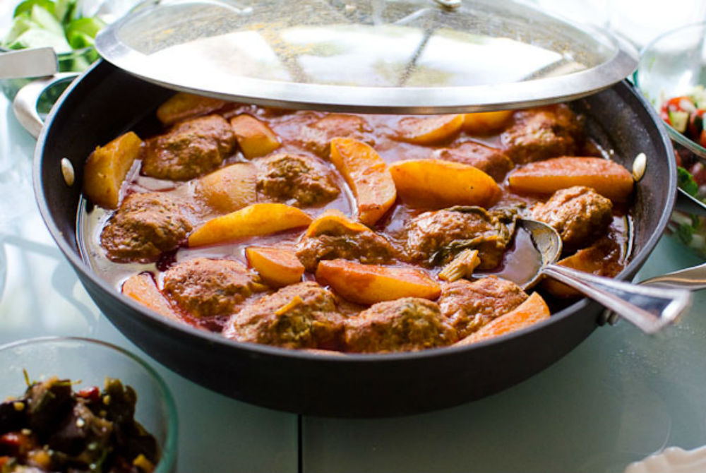 4. 15 λ πριν βράσουν καλά οι πατάτες προσθέτετε τα τηγανισμένα κεφτεδάκια και επιπλέον ζεστό νερό αν απαιτείται, και ανακινείτε τη κατσαρόλα (μην ανακατεύετε με κουτάλι) για να σκεπαστούν τα κεφτεδάκια με τη σάλτσα. Βράζετε για άλλα 15 λ περίπου ή μέχρι να βράσουν καλά οι πατάτες και μελώσει καλά η σάλτσα.