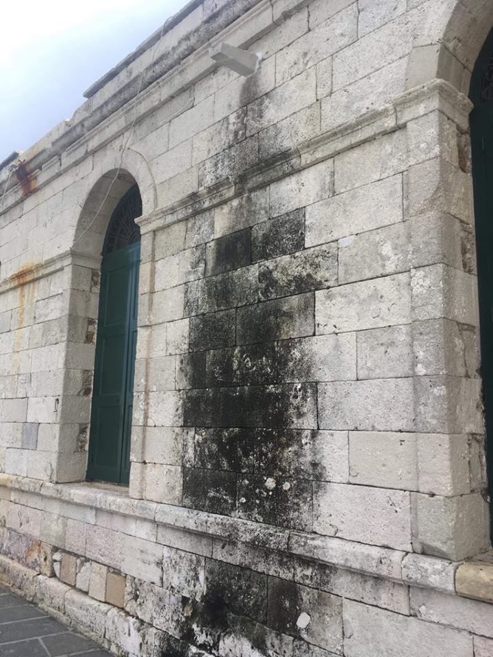 Από την άλλη πλευρά του κτηρίου, ο χρόνος και… οι καιρικές συνθήκες αφήνουν τα “αποτυπώματα” τους στο Τέμενος, με ότι αυτό μπορεί να συνεπάγεται γι’ αυτό.