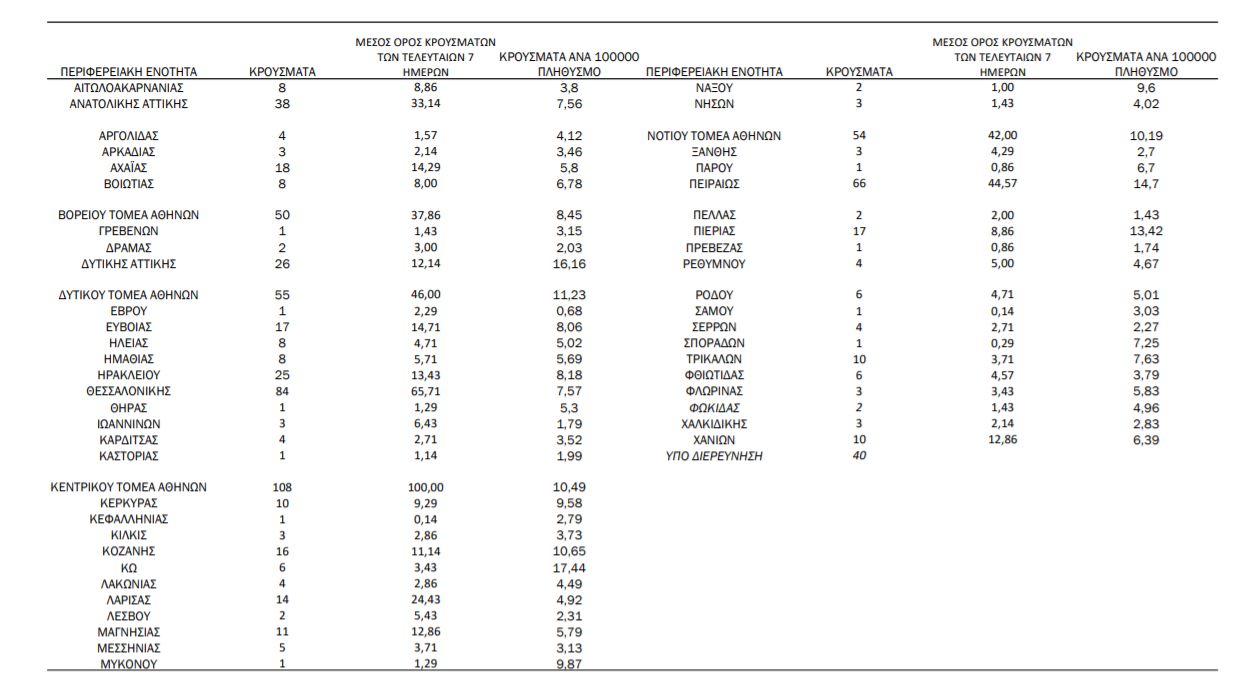 Σε πανελλαδικό επίπεδο, ο “χάρτης” των κρουσμάτων έχει ως εξής: