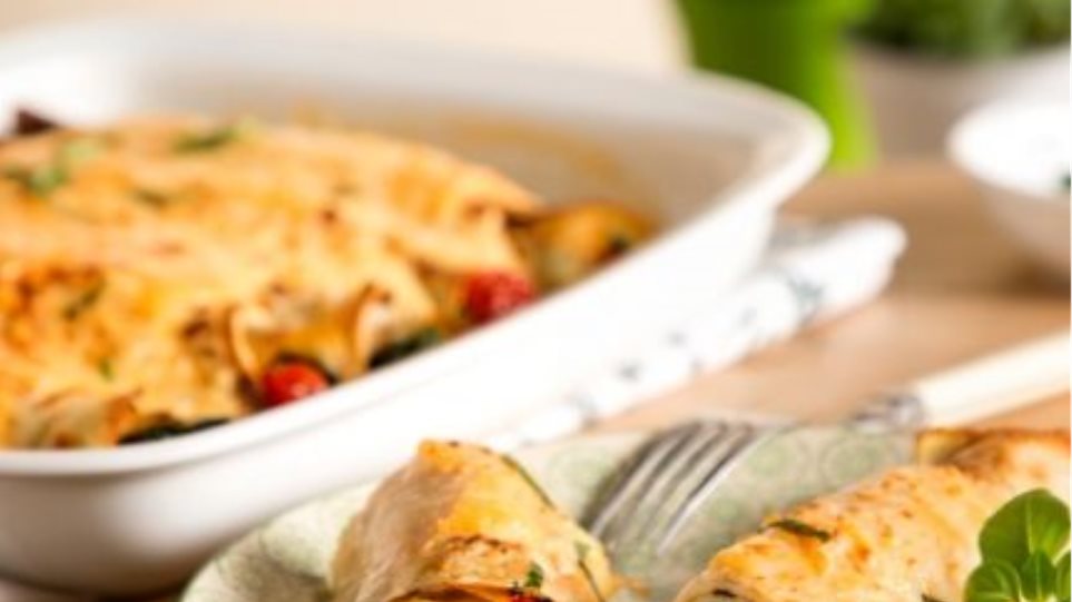 Φτιάχνουμε εύκολα και γρήγορα Κρέπες, τις τυλίγουμε και τις γεμίζουμε με σπανάκι, ανθότυρο, ντοματίνια και τις περιχύνουμε με απαλή Μπεσαμέλ.