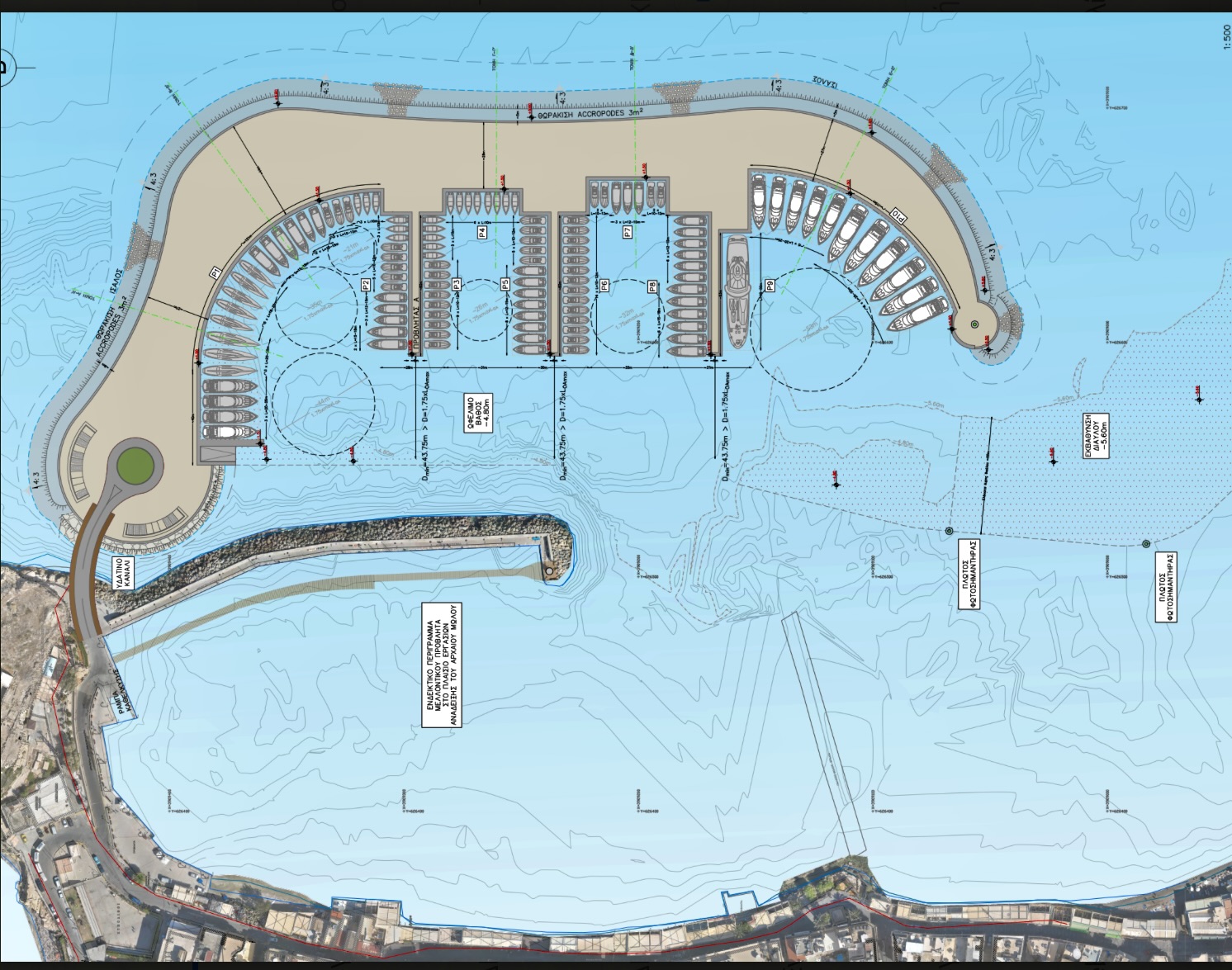 Ιδιαίτερη μέριμνα δίνεται στην αποκατάσταση και ανάδειξη του αρχαίου ρωμαϊκού μόλου, με απόλυτο σεβασμό στο μνημείο και στη γεωμορφολογία της περιοχής, ώστε το νέο λιμάνι να συνδυάζει λειτουργικότητα, αισθητική και ιστορική ταυτότητα.