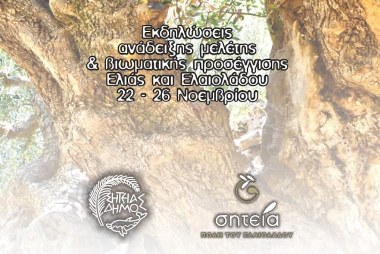 Ο Δήμος Σητείας δίνοντας ιδιαίτερη έμφαση στον τίτλο που κατέχει “ΣΗΤΕΙΑ ΠΟΛΗ ΤΟΥ ΕΛΑΙΟΛΑΔΟΥ” και με αφορμή τον εορτασμό της ΠΑΓΚΟΣΜΙΑΣ ΗΜΕΡΑΣ ΕΛΙΑΣ ΚΑΙ ΕΛΑΙΟΛΑΔΟΥ θα πραγματοποιήσει σειρά εκδηλώσεων ανάδειξης, μελέτης και βιωματικής