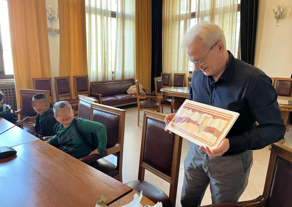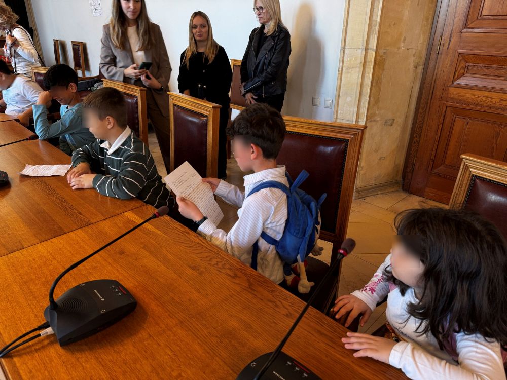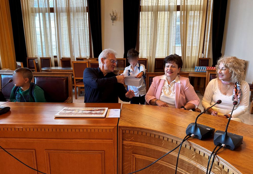 Τα παιδιά της Δ’ Τάξης του 4ου Δημοτικού Σχολείου μαζί με τις εκπαιδευτικούς τους, υποδέχθηκε με χαρά ο Δήμαρχος Ηρακλείου Αλέξης Καλοκαιρινός και η Αντιδήμαρχος Εθελοντισμού Φιλαρέτη Δαφέρμου – Χρονάκη στην αίθουσα «Ελευθέριος Βενιζέλος» στη Λότζια, το πρωί της Τετάρτης 26/11.