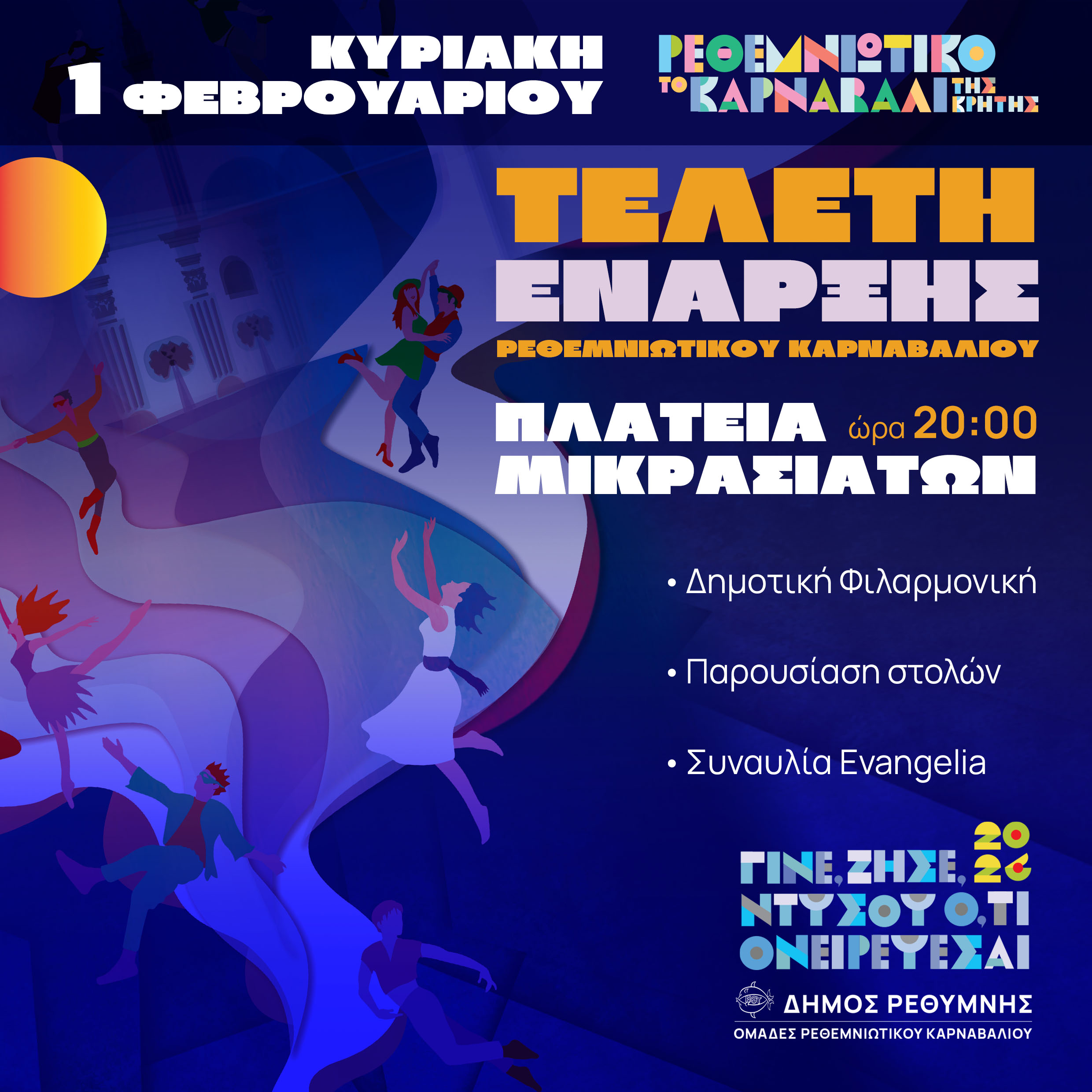 Η μεγάλη στιγμή της Κρήτης πλησιάζει! Όλα είναι έτοιμα για το Ρεθεμνιώτικο Καρναβάλι ’26 και η εκκίνηση αναμένεται να είναι εντυπωσιακή, προμηνύοντας μια φαντασμαγορική συνέχεια!