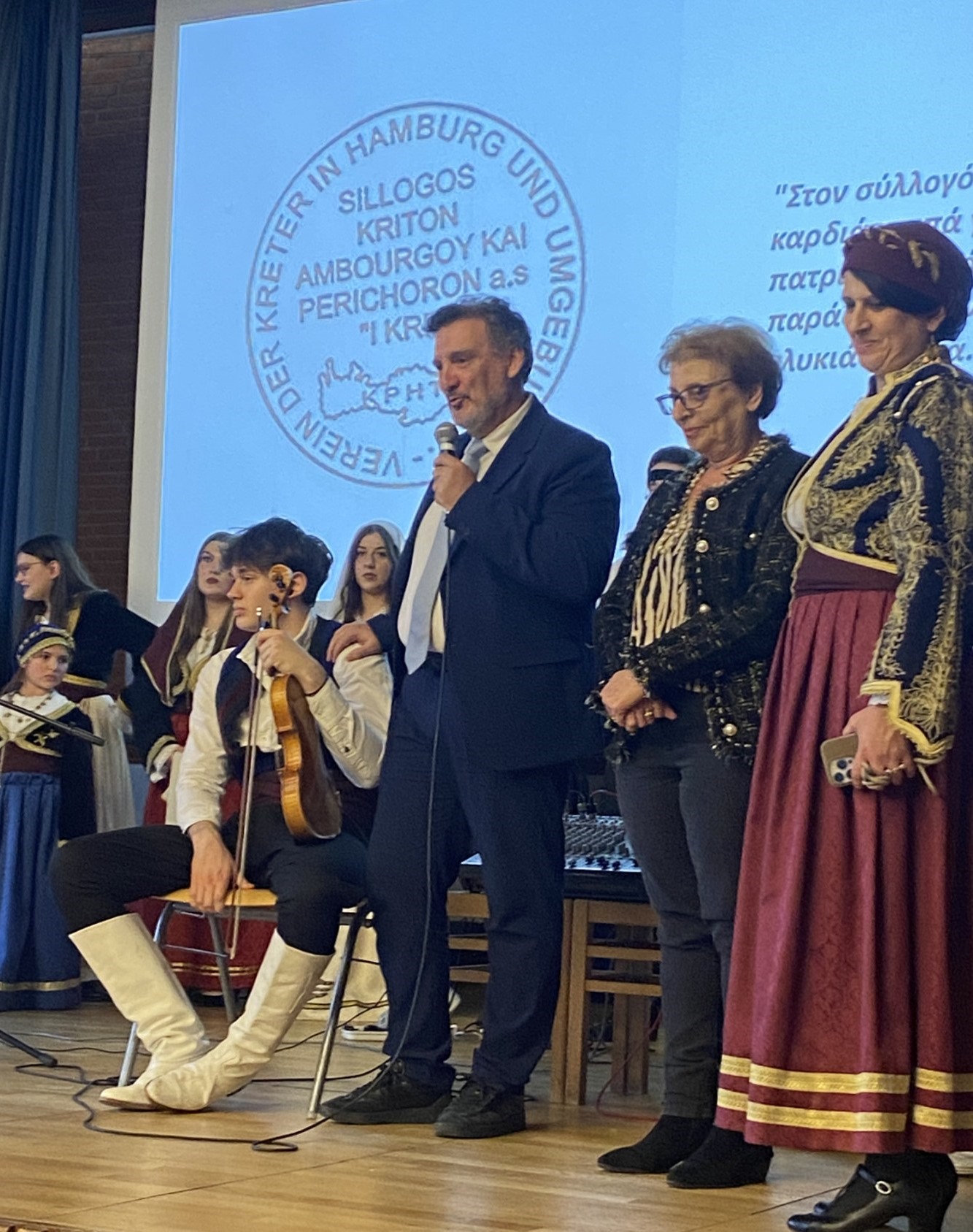 Ο αντιπεριφερειάρχης Τουρισμού παρουσίασε την Κρήτη σε μια ξεχωριστή μουσικοχορευτική εκδήλωση πλαισιωμένη από τα νεαρά μέλη του Συλλόγου Κρητών Αμβούργου, τα οποία εντυπωσίασαν το κοινό με τις παραδοσιακές τους στολές και τα ριζίτικα τραγούδια, ενώ δεν έλλειψε το κρητικό κέρασμα με παραδοσιακά εδέσματα.