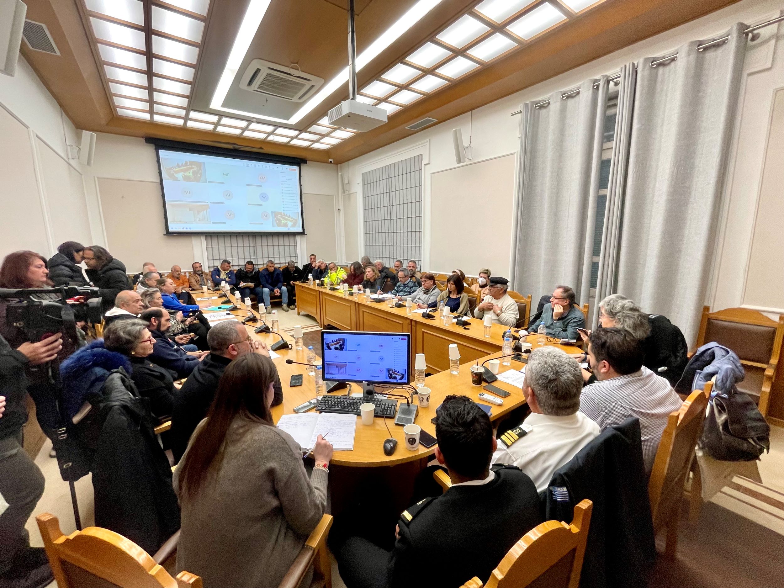 Στη συνεδρίαση μετείχαν υπηρεσιακοί παράγοντες απ’ όλες τις εμπλεκόμενες υπηρεσίες, το ΕΛΚΕΘΕ, το ΓΕΩΤΕΕ και εκπρόσωποι των Αλιέων.