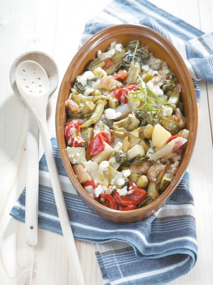 Τα χρόνια που δεν υπήρχαν λαϊκές και μανάβικα στην Κρήτη, το κάθε σπιτικό είχε το δικό του κήπο. Στην αρχή της παραγωγής των λαχανικών δεν έβγαιναν ικανοποιητικές ποσότητες, έτσι ώστε το κάθε είδος να μπορεί από μόνο του να στήσει κατσαρόλα. Οι νοικοκυράδες, λοιπόν, μάζευαν λίγα απ’ όλα για να γεμίσουν ένα ταψί. Οπότε, αν και πολύ νόστιμο, εκείνα τα χρόνια ήταν πιο πολύ αναγκαστική επιλογή.