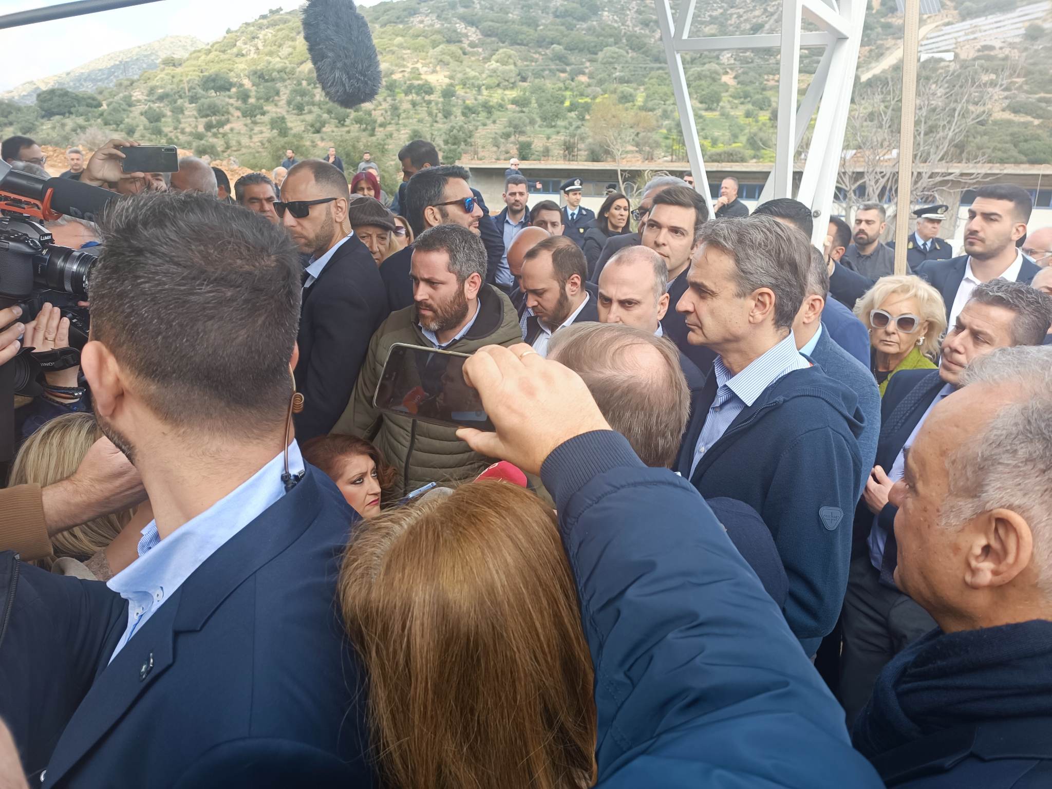 Με όργανα και μαντινάδες υποδέχθηκαν σήμερα τον Μητσοτάκη στο Ηράκλειο. Πρώτος σταθμός της περιοδείας του πρωθυπουργού ήταν το εργοτάξιο του Βόρειου Οδικού Άξονα Κρήτης (ΒΟΑΚ) στην περιοχή της Νεάπολης Λασιθίου.