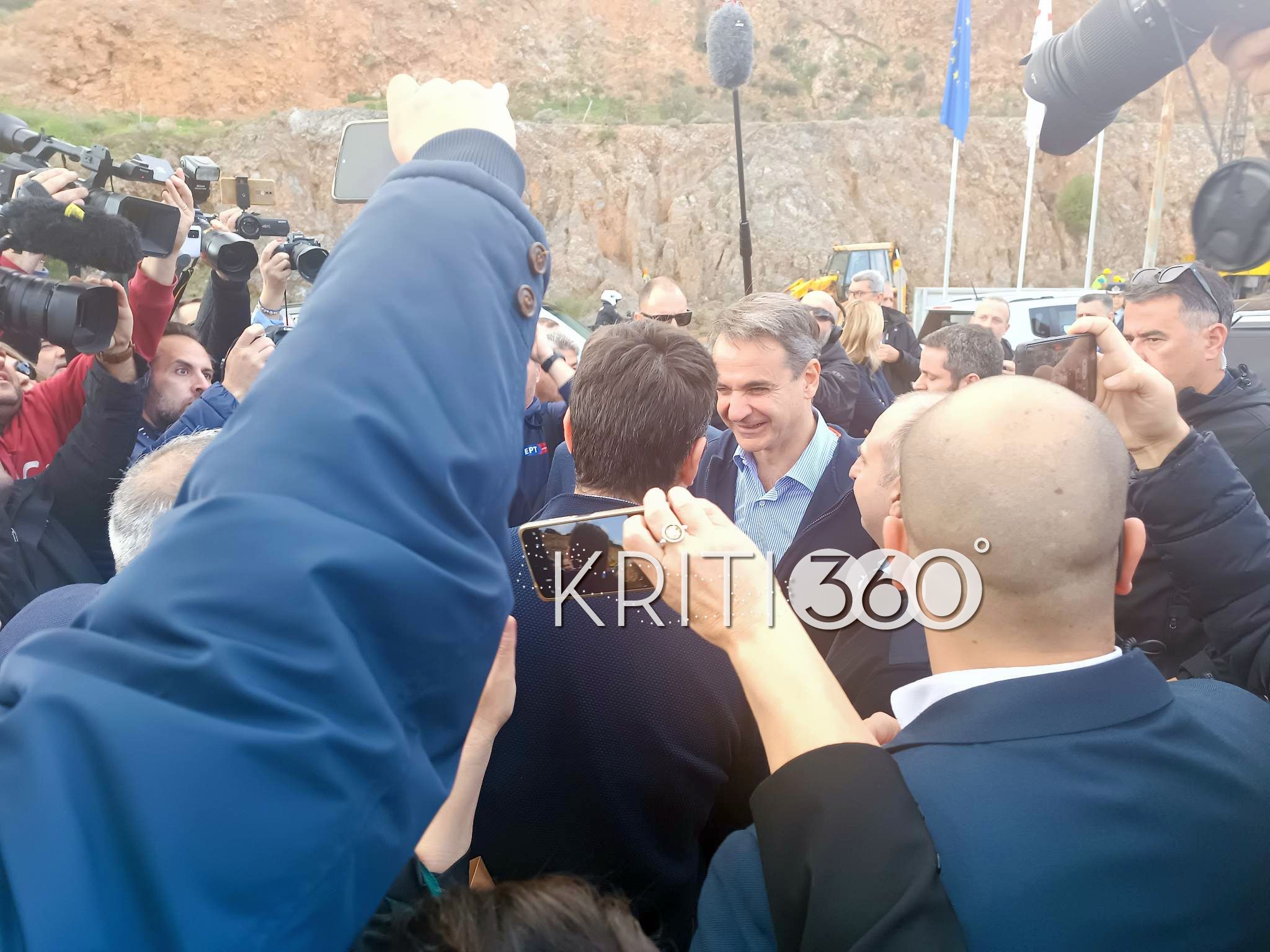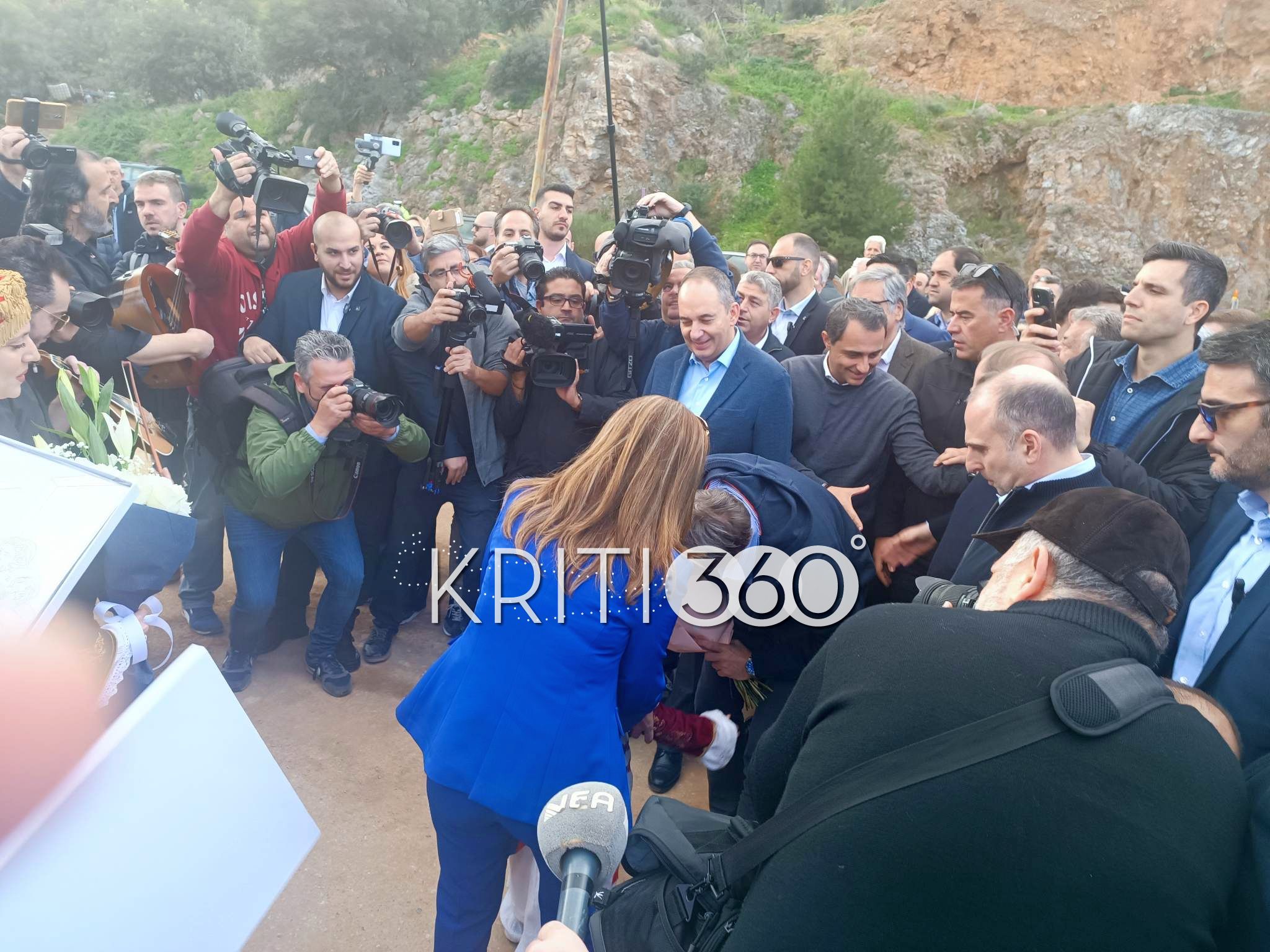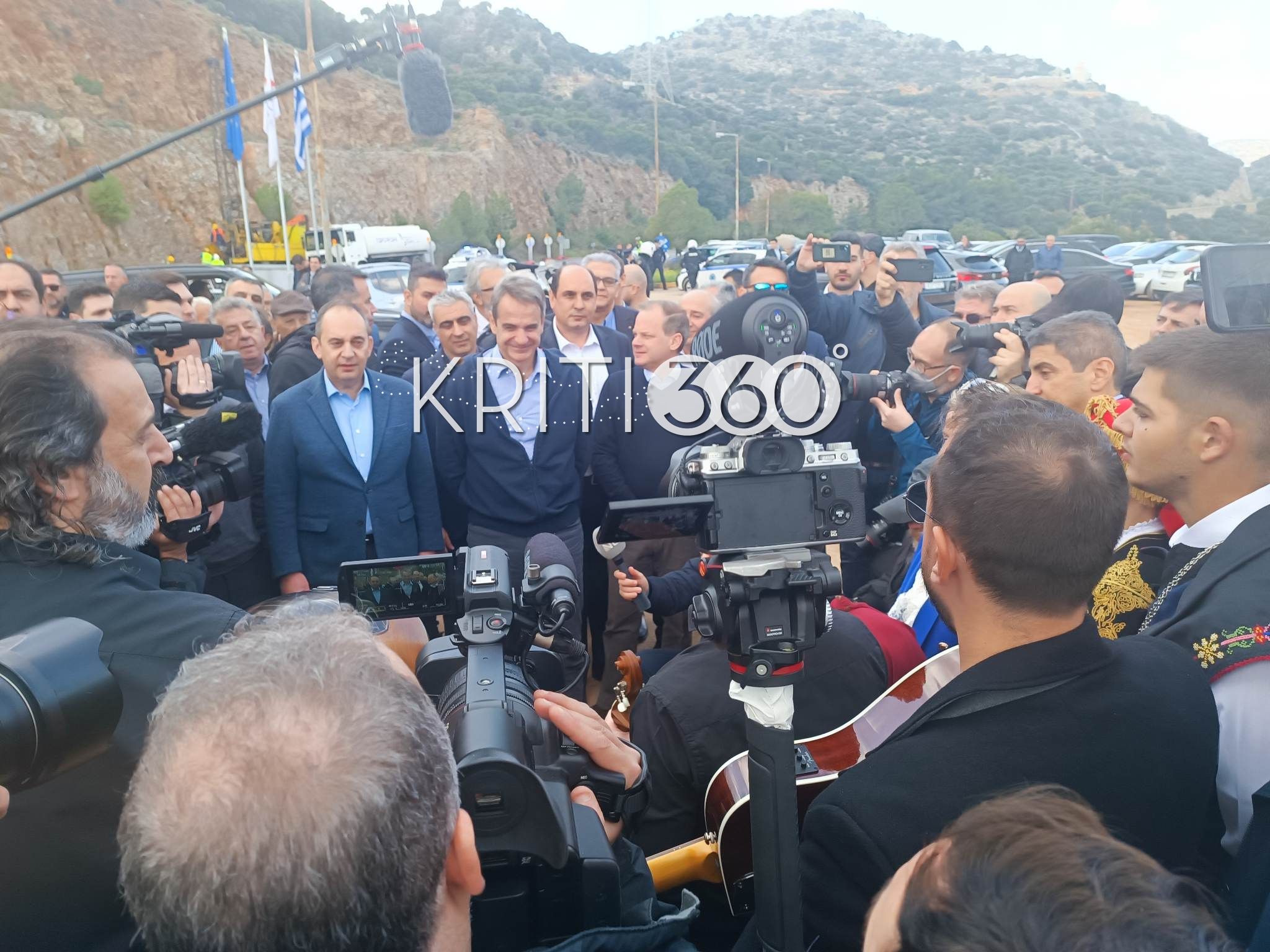 Με όργανα και μαντινάδες υποδέχθηκαν σήμερα τον Μητσοτάκη στο Ηράκλειο. Πρώτος σταθμός της περιοδείας του πρωθυπουργού ήταν το εργοτάξιο του Βόρειου Οδικού Άξονα Κρήτης (ΒΟΑΚ) στην περιοχή της Νεάπολης Λασιθίου.