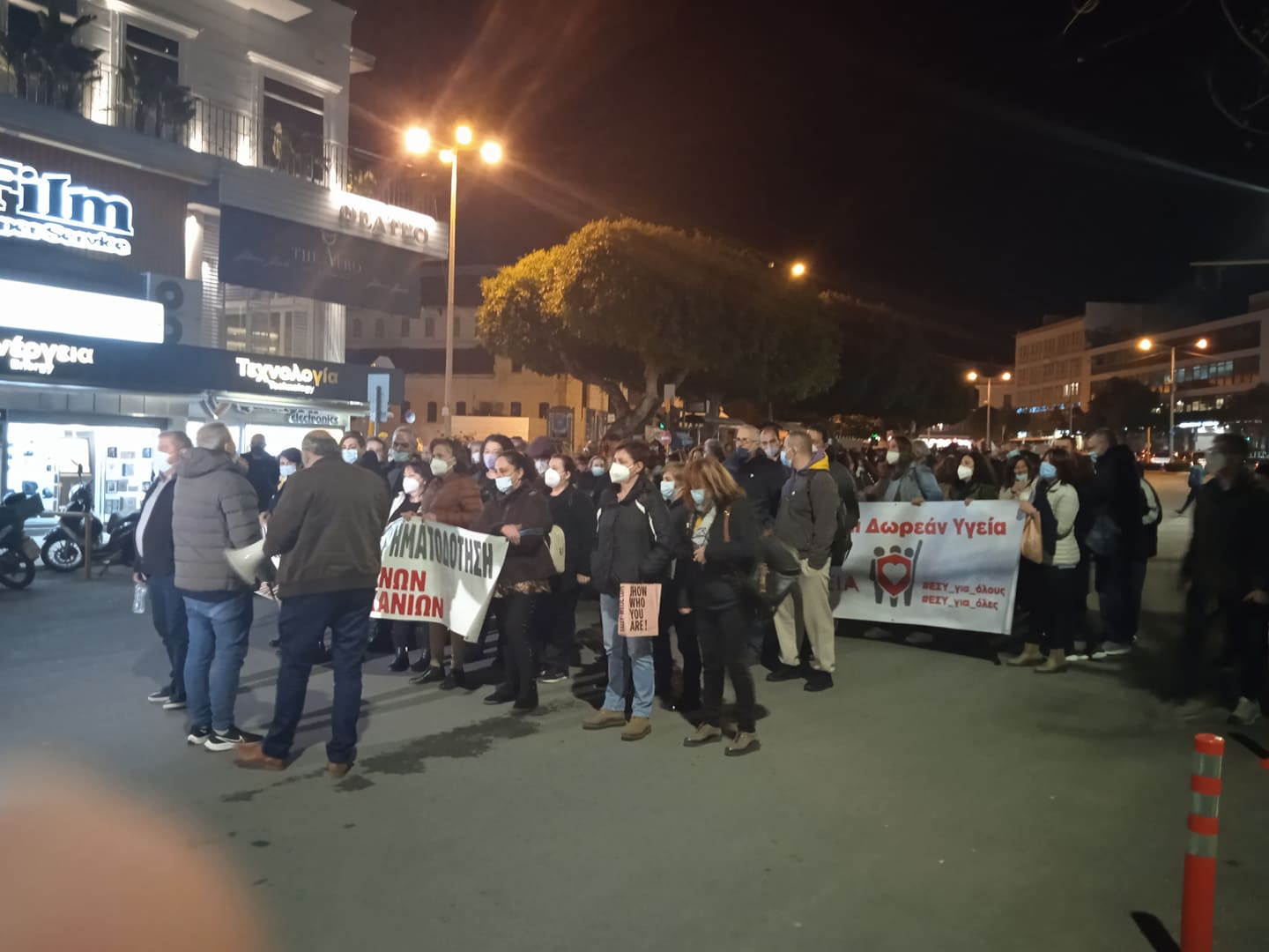 Εκατοντάδες Χανιώτες ανταποκρίθηκαν στο κάλεσμα του Συλλόγου Εργαζομένων στο Γενικό Νοσοκομείο Χανίων δίνοντας το παρών στο συλλαλητήριο που έγινε την Παρασκευή 25/2 το απόγευμα με σημείο συνάντησης την Πλατεία Δημοτικής Αγοράς. Μαζί με τους υγειονομικούς που διαμαρτύρονται για τις συνθήκες στα Νοσοκομεία και δη το Γ.Ν. Χανίων βρέθηκαν και μέλη από μια σειρά από άλλους συλλόγους και κλάδους που ένωσαν τις φωνές τους.