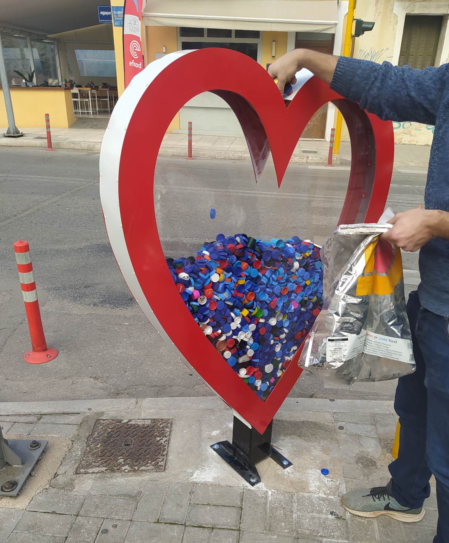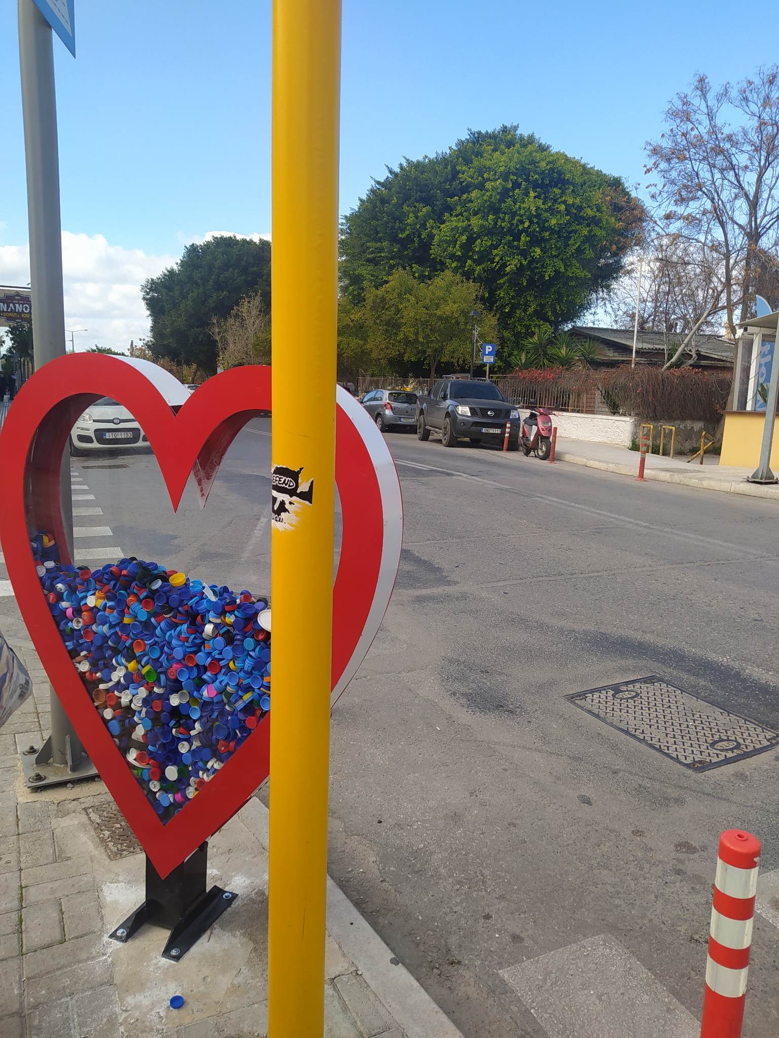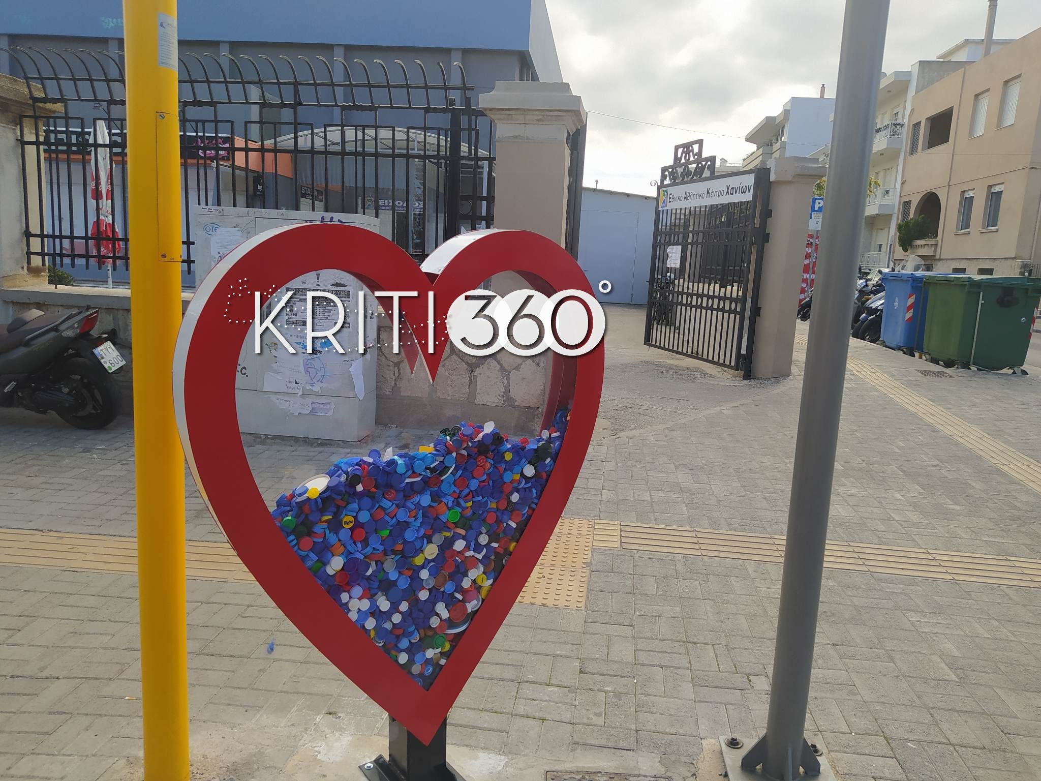 Πρόκειται για μια κατασκευή σε σχήμα καρδιάς που είναι τοποθετημένη στην είσοδο του Εθνικού Σταδίου Χανίων, επί της οδού “Ελ.Βενιζέλου” στην οποία οι κάτοικοι της πόλης μπορούν να εναποθέτουν τα πλαστικά καπάκια που μαζεύουν από τα διάφορα μπουκάλια.