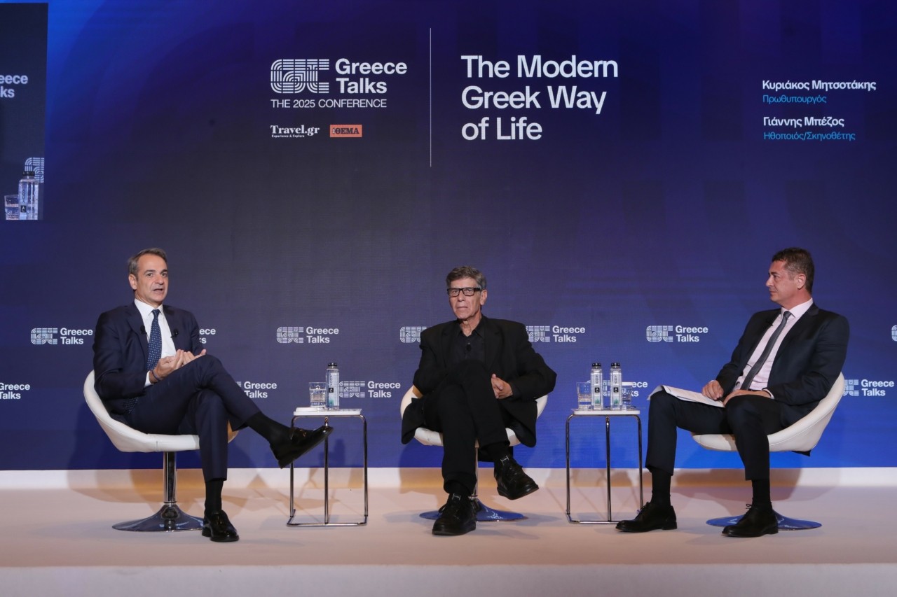 Ένα ζωντανό διάλογο για διάφορα θέματα είχε με τον ηθοποιό Γιάννη Μπέζο ο πρωθυπουργός Κυριάκος Μητσοτάκης, στα πλαίσια του συνεδρίου Greece Talks, που διοργανώνει το «Πρώτο Θέμα» και το travel.gr