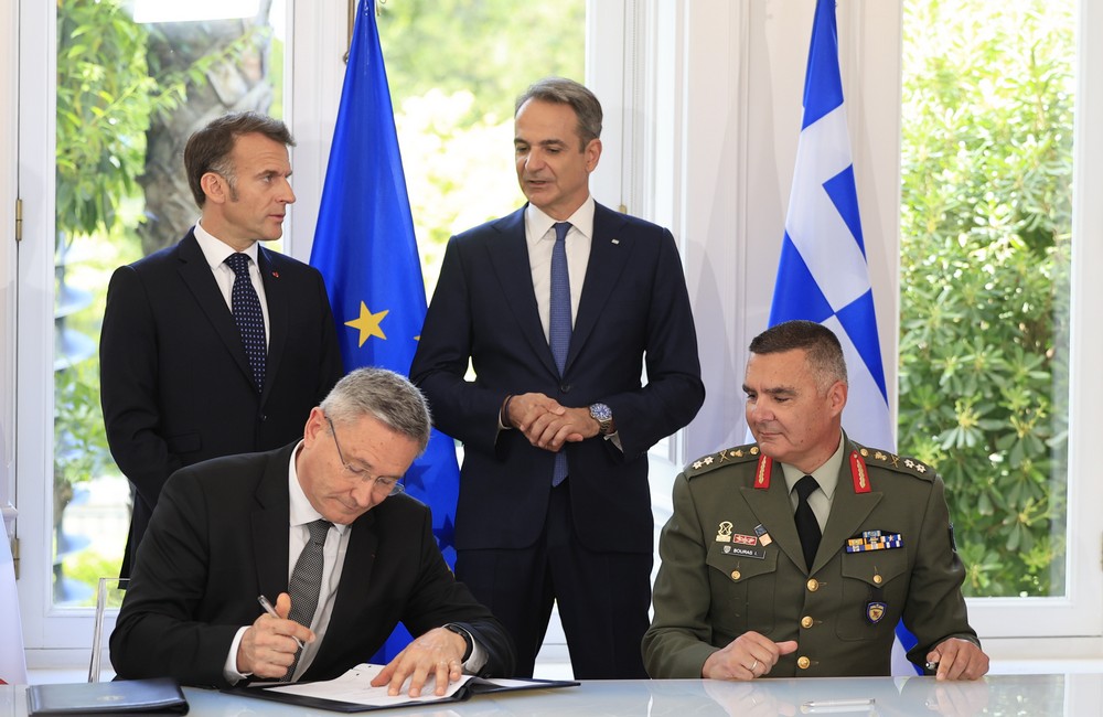 Μετά το τέλος του τετ α τετ στο Μαξίμου, ακολούθησε η υπογραφή της στρατηγικής συμφωνίας, με επίκεντρο την άμυνα, τη γεωπολιτική συνεργασία και την ενίσχυση της ευρωπαϊκής αυτονομίας και αυτή την ώρα γίνονται οι κοινές δηλώσεις των δύο ηγετών.