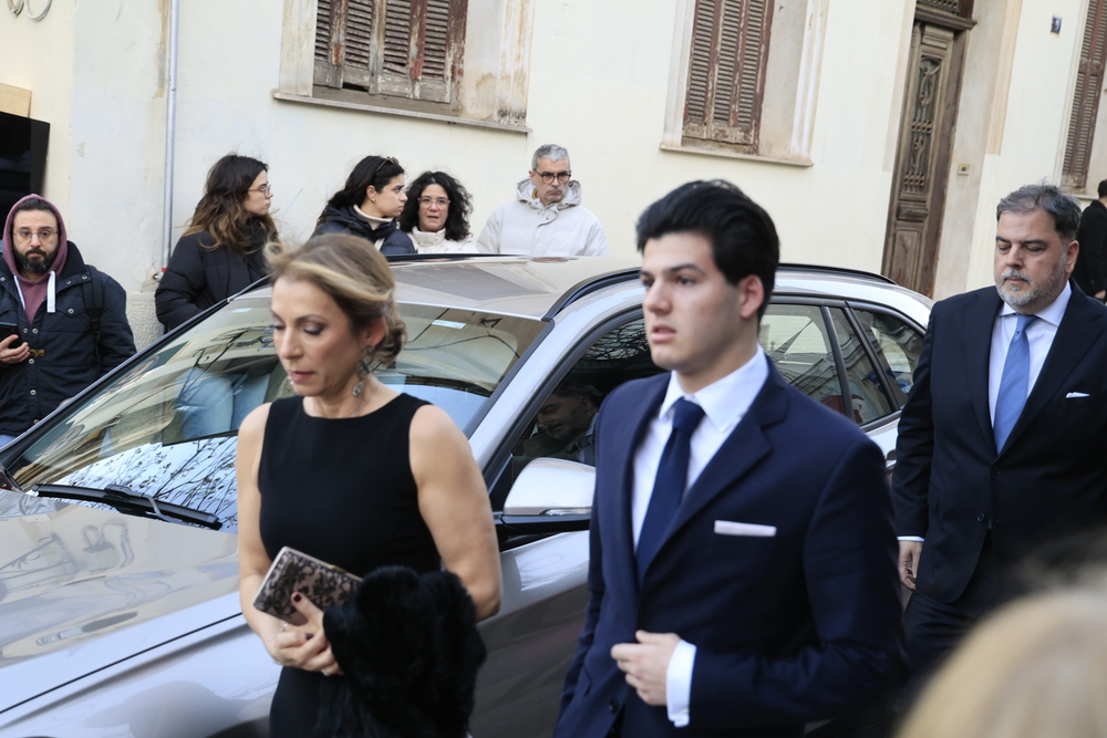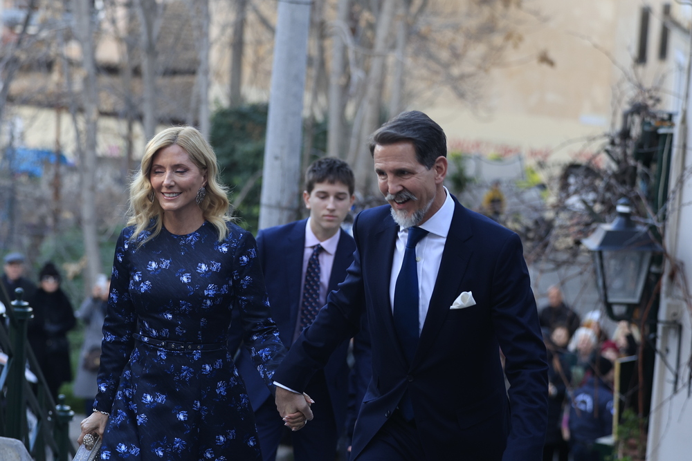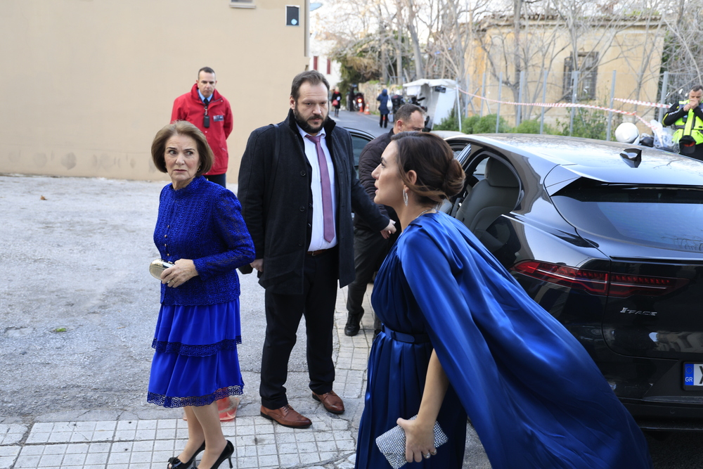 Στην εκκλησία βρίσκεται και ο Γιάννης Βαρδινογιάννης με τη σύζυγό του, Μελίσσα Γκρόμελ. Ανάμεσα στους προσκεκλημένους και η Όλγα Κεφαλογιάννη και η Μαρία Γρυλλάκη, οι οποίες είναι εξαδέλφες της Χρυσής Βαρδινογιάννη.