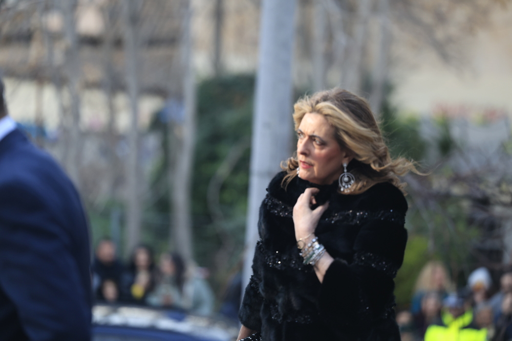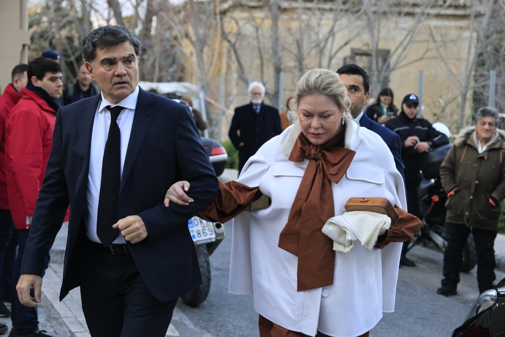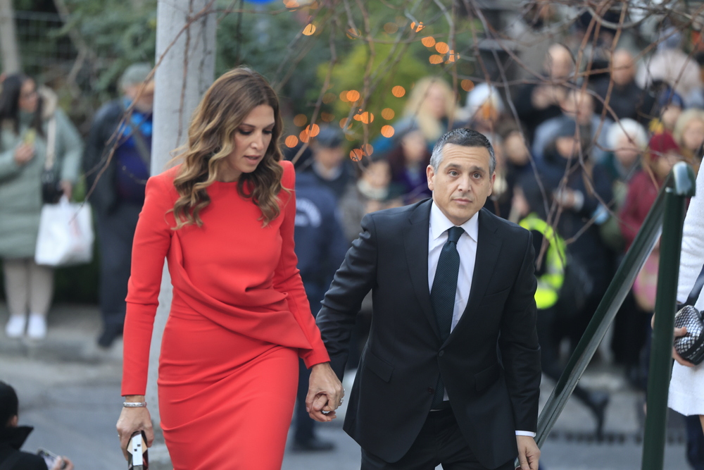 Συνοδευόμενη από τον πατέρα της Γιώργο Βαρδινογιάννη έφτασε στο ναό η Χρυσή Βαρδινογιάννη