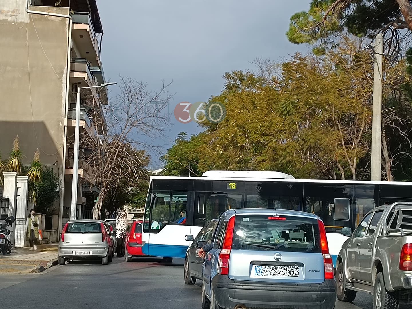 Ο οδηγός του κόκκινου ΙΧ, διπλό-πάρκαρε μπροστά από την τράπεζα στην αρχή της οδού Τζανακάκη. Αποτέλεσμα ήταν το λεωφορείο του αστικού ΚΤΕΛ που ερχόταν από την οδό Πλουμιδάκη και ήθελε να στρίψει προς την Τζανακάκη, να μην μπορεί. Έτσι δημιουργήθηκε αξιόλογη “ουρίτσα” με οχήματα και αγανακτισμένους οδηγούς που περίμεναν τον “πεντα-λεπτάκια” να τελειώσει τη δουλίτσα του και να φύγει