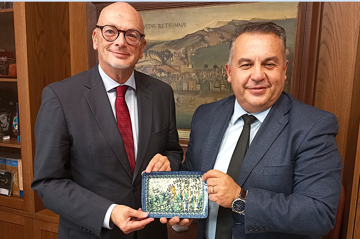 Τον υπό διαπίστευση νέο Πρέσβη της Πολωνίας στην Ελλάδα κ. Wojciech Ponikiewski και τον Πρόξενο της ίδιας χώρας κ. Michal Zawisza υποδέχθηκε σήμερα στο Δημαρχείο ο Δημαρχεύων του Δήμου Ρεθύμνης, Αντιδήμαρχος Παιδείας, Νέας Γενιάς και Δια Βίου Μάθησης Καθηγητής Νεκτάριος Παπαδογιάννης.