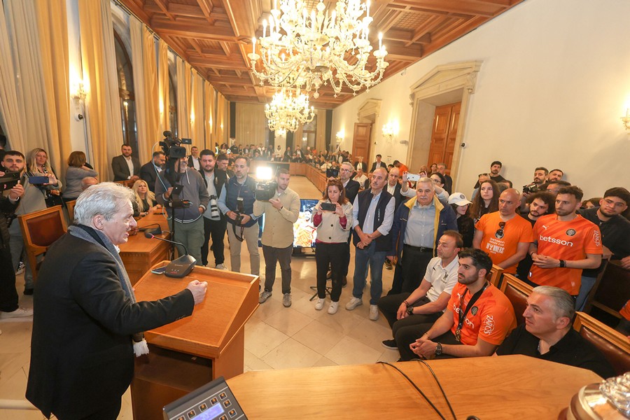 Πανηγυρική υποδοχή από το Δήμαρχο Ηρακλείου και το Δημοτικό Συμβούλιο – Αλέξης Καλοκαιρινός: Ο ΟΦΗ μεγαλούργησε. Αυτή η τόσο δυνατή στιγμή η οποία ζούμε πρέπει να ανοίξει μια εποχή. Αυτή η στιγμή είναι μια απαρχή.