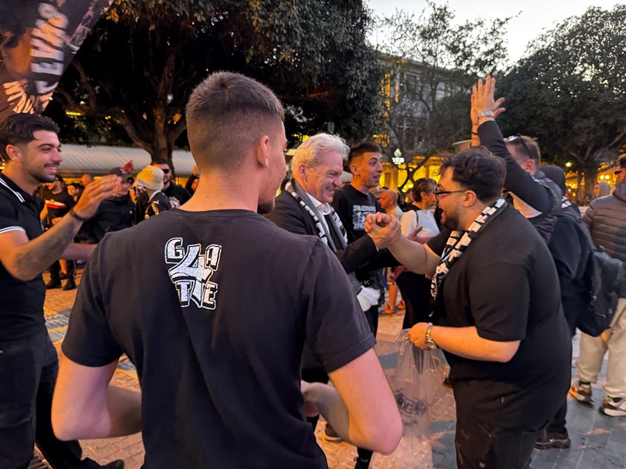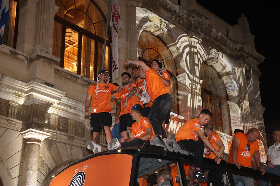 Ξεχωριστή στιγμή η ύψωση του τρόπαιου μέσα στην αίθουσα του Δημοτικού Συμβουλίου «Ελευθέριος Βενιζέλος» από τον Μιχάλη Μπούση και τον Αλέξη Καλοκαιρινό αλλά και οι εικόνες από τα παράθυρα του ιστορικού κτιρίου της Λότζια με το κύπελλο να σκορπά ρίγη συγκίνησης και τους φιλάθλους να αποθεώνουν παίκτες, προπονητή και διοίκηση.