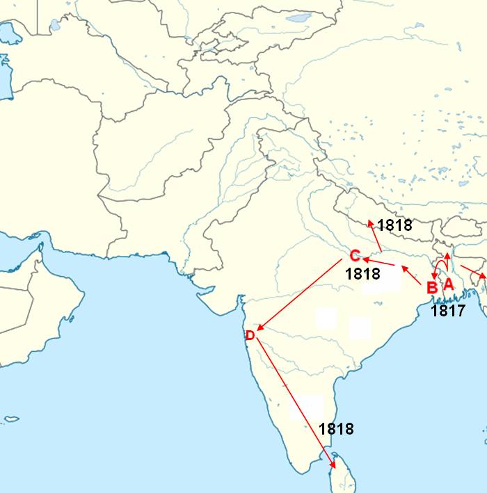 Η χολέρα ήταν ενδημική στον κάτω ποταμό του Γάγγη. Τις ώρες του φεστιβάλ, οι προσκυνητές συχνά προσβάλλονταν από την ασθένεια εκεί και το μετέφεραν πίσω σε άλλα μέρη της Ινδίας κατά την επιστροφή τους, όπου θα εξαπλωνόταν και θα υποχωρούσε. Το 1817 άρχισε να εξαπλώνεται έξω από το Δέλτα του Γάγγη. Μέχρι τον Σεπτέμβριο του 1817, η ασθένεια είχε φτάσει στην Καλκούτα στον κόλπο της Βεγγάλης και γρήγορα εξαπλώθηκε στην υπόλοιπη υποήπειρο. Μέχρι το 1818 ξέσπασε στη Βομβάη, στη δυτική ακτή. Τον Μάρτιο του 1820 εντοπίστηκε στο Σιάμ, τον Μάιο του 1820 είχε εξαπλωθεί μέχρι την Μπανγκόκ και τη Μανίλα, την άνοιξη του 1821 έφτασε στην Ιάβα, το Ομάν και την Ανχάι στην Κίνα. το 1822 βρέθηκε στην Ιαπωνία, στον Περσικό Κόλπο, στη Βαγδάτη, στη Συρία και στον Υπερκαύκασο και το 1823 η χολέρα έφτασε στο Αστραχάν, τη Ζανζιβάρη και τον Μαυρίκιο.