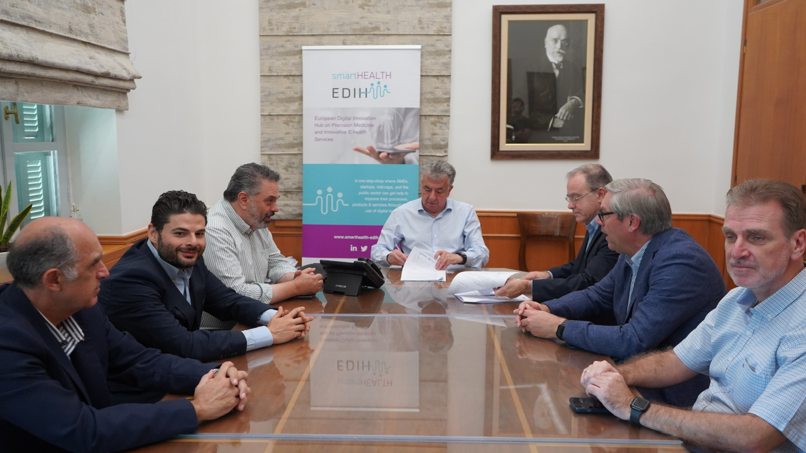 Με στόχο τη βελτίωση των υπηρεσιών υγείας, την ενίσχυση της πρόληψης και την αξιοποίηση ψηφιακών τεχνολογιών αιχμής, υπογράφτηκε σήμερα από τον Περιφερειάρχη Κρήτης, Σταύρο Αρναουτάκη και τον Διευθυντή του Ινστιτούτου Πληροφορικής του ΙΤΕ, Παναγιώτη Τσακαλίδη, Σύμφωνο Συνεργασίας, στο πλαίσιο του ευρωπαϊκού έργου «Smart HEALTH – European Digital Innovation Hub for Smart Health».