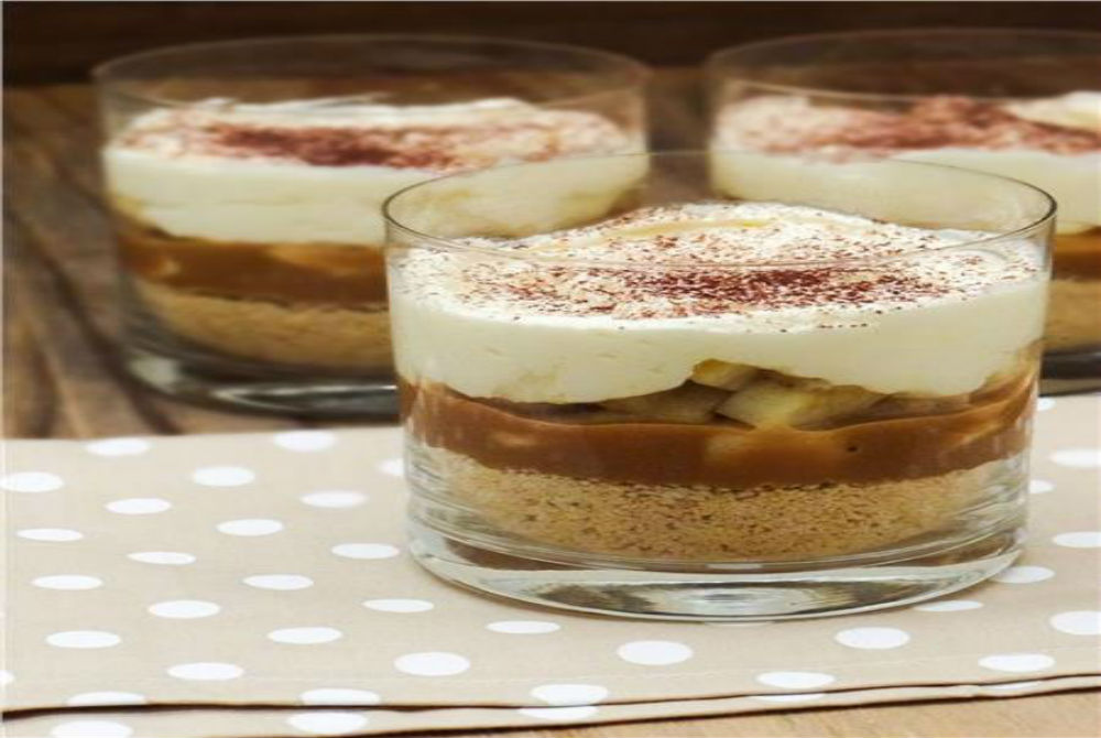 Παγώνουμε το Banoffee κι όταν πρόκειται να το σερβίρουμε το γαρνίρουμε με τη χτυπημένη κρέμα και με το ξύσμα σοκολάτας