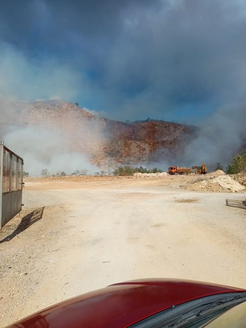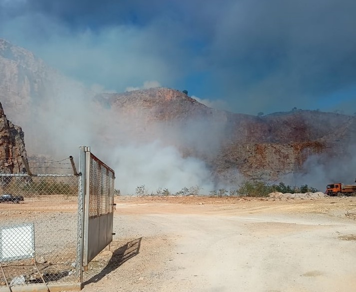Από την προηγούμενη Παρασκευή και ακόμα καίει η χωματερή στο παλιό λατομείο στο Χορδάκι στο Ακρωτήρι.
