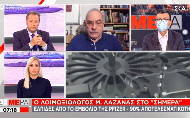 «Η Pfizer αναφέρει για αποτελεσματικότητα 90%, είναι πολύ μεγάλη επιτυχία. Το εμβόλιο γρίπης έχει 60% αποτελεσματικότητα, και πάλι μας προστατεύει. Και στις ανεπιθύμητες ενέργειες φαίνεται να πηγαίνει καλά» επισήμανε στον ΣΚΑΪ ο λοιμωξολόγος Μάριος Λαζανάς.