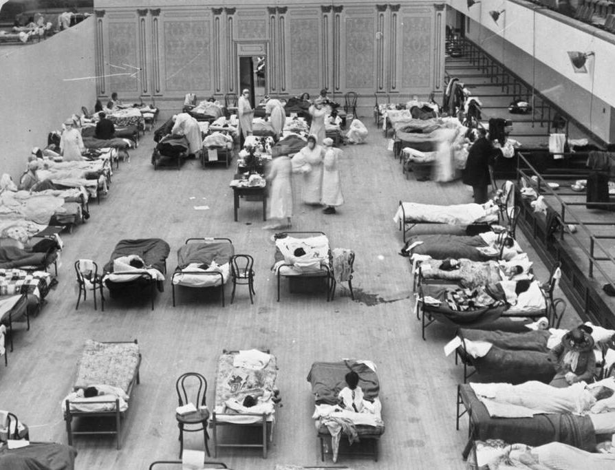 Η «ισπανική γρίπη» εν μέσω Πρώτου Παγκοσμίου Πολέμου, η οποία εκτιμάται ότι σκότωσε τουλάχιστον 50 εκατομμύρια ανθρώπους παγκοσμίως, ιδίως νέους και μεσήλικες (αντίθετα με τον κορωνοϊό που «προτιμά» ηλικιωμένους), είχε κυρίως κοινωνικό και όχι ιατρικό τέλος.