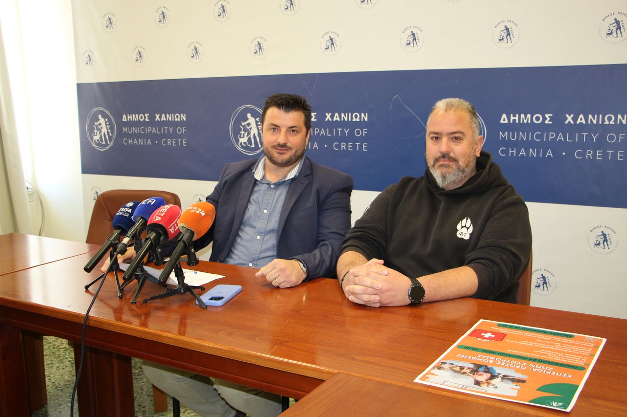 Σε Συνέντευξη Τύπου, που παραχωρήθηκε σήμερα, Δευτέρα 20 Απριλίου 2026, στην Αίθουσα Τύπου του Δημαρχείου Χανίων στο πλαίσιο των δράσεων για την Παγκόσμια Ημέρα Αδέσποτων Ζώων (04/04), γνωστοποιήθηκε από τον Αντιδήμαρχο Τοπικής Οικονομικής Ανάπτυξης, Γιάννη Νικηφοράκη, η διοργάνωση εσπερίδας με θέμα τις «Πρώτες Βοήθειες Ζώων Συντροφιάς», την Παρασκευή 24 Απριλίου, στις 18.00, στο Κ.Α.Μ.
