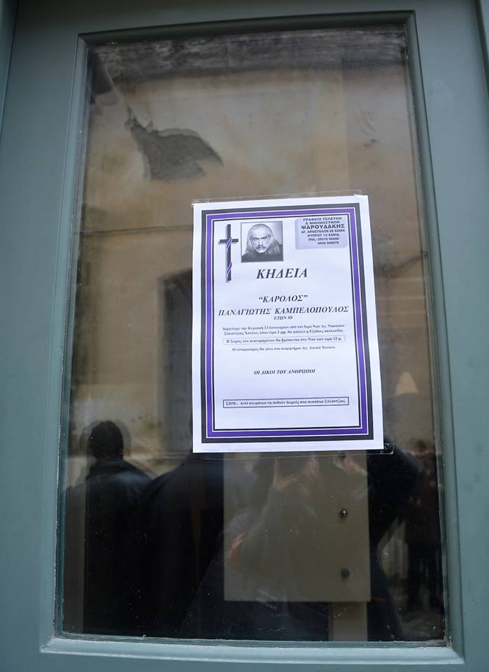 Συγγενείς, φίλοι αλλά και όσοι γνώριζαν τον σπουδαίο Κάρολο Καμπελόπουλο παρέστησαν στην κηδεία που τελέστηκε στον Ιερό Ναό του Αγίου Νικολάου στη Σπλάντζια Χανίων ενώ ετάφη στο κοιμητήριο του Αγίου Λουκά.