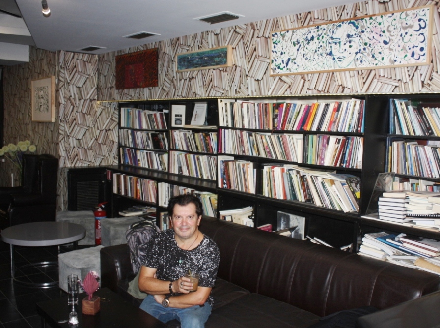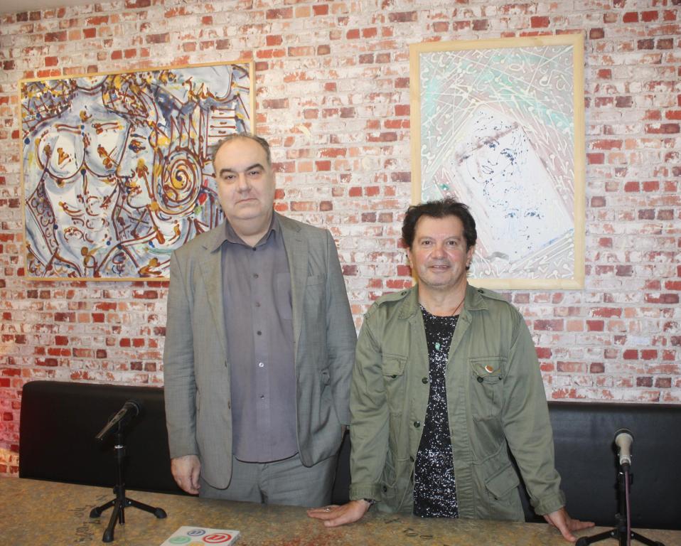 Στις photos ο Κώστας Ευαγγελάτος με τον εκδότη, υπεύθυνο των εκδηλώσεων Βασίλη Χατζηιακώβου και τον καλλιτέχνη Ντάνυ Μαρτζώκα στο Polis Art Cafe μετά το στήσιμο της πολυεπίπεδης έκθεσης.