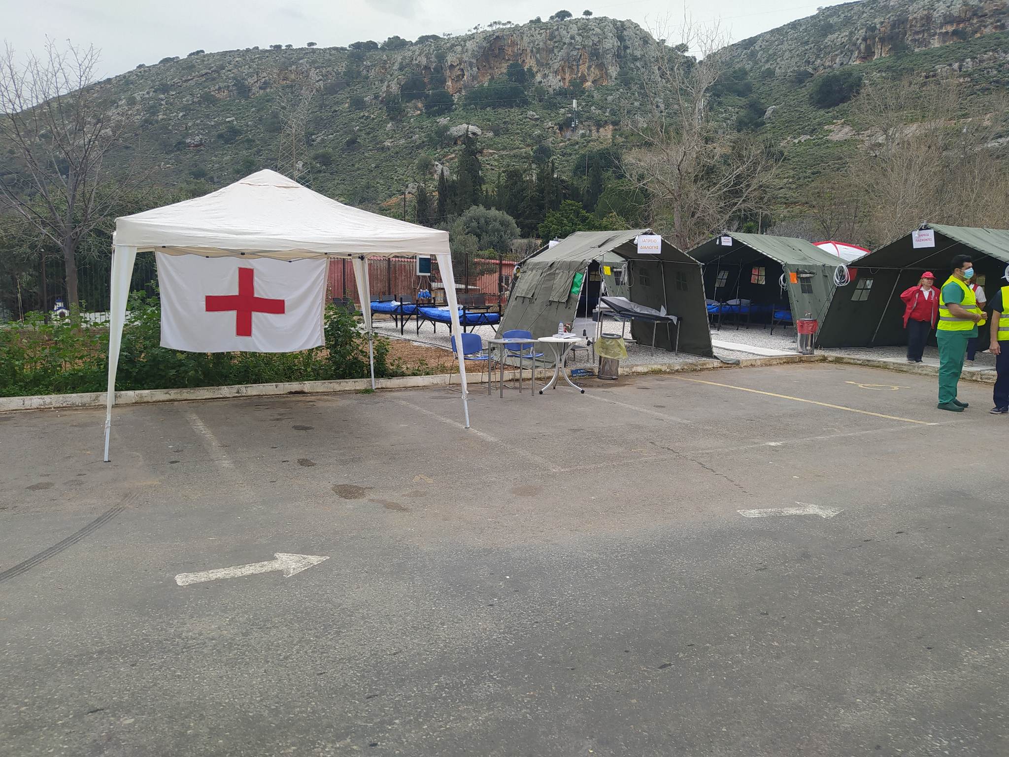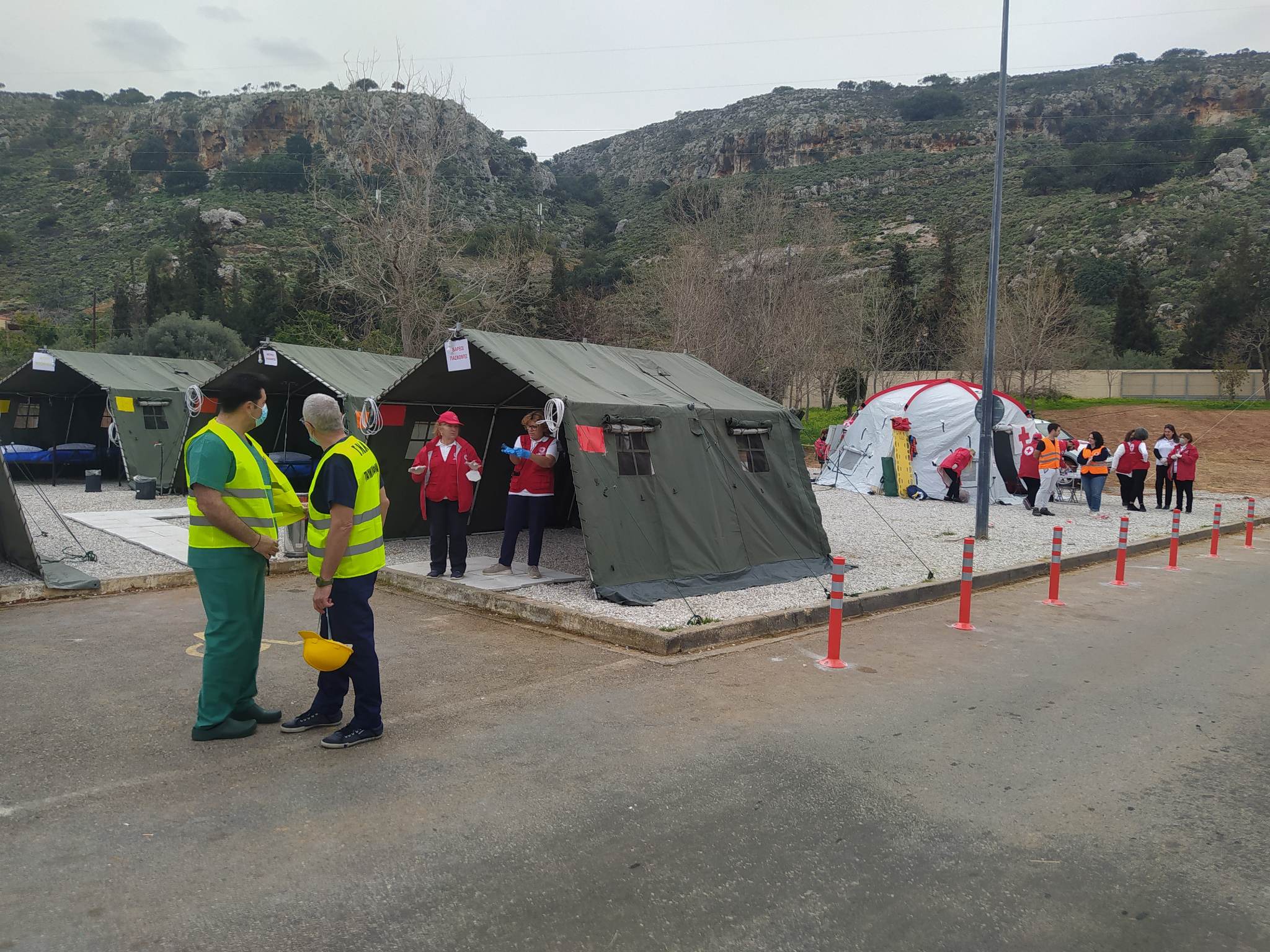 - Εγκατάσταση υπαίθριου καταυλισμού με στρατιωτικές σκηνές και εξόπλισή τους με ξενοδοχειακό, ιατρικό, υγειονομικό και άλλο υλικό από το προσωπικό του Νοσοκομείου.