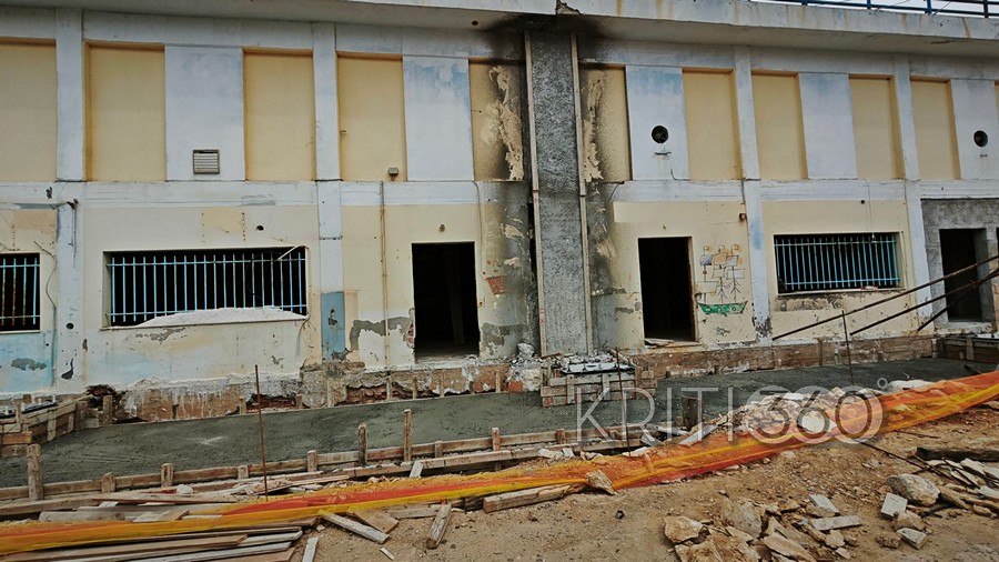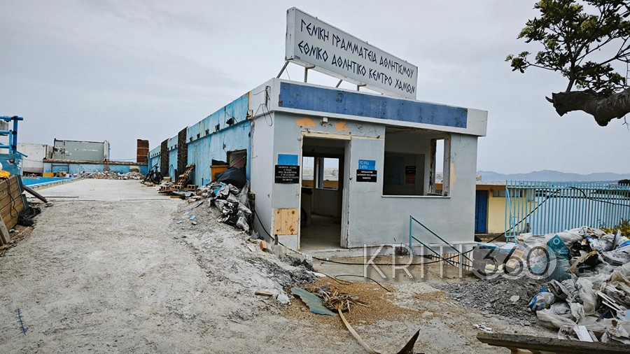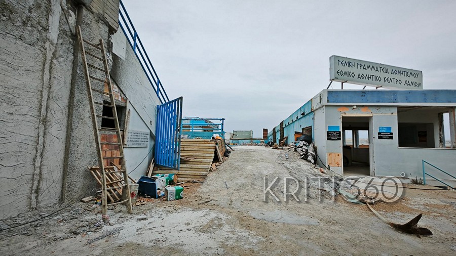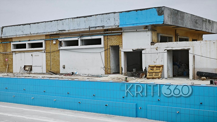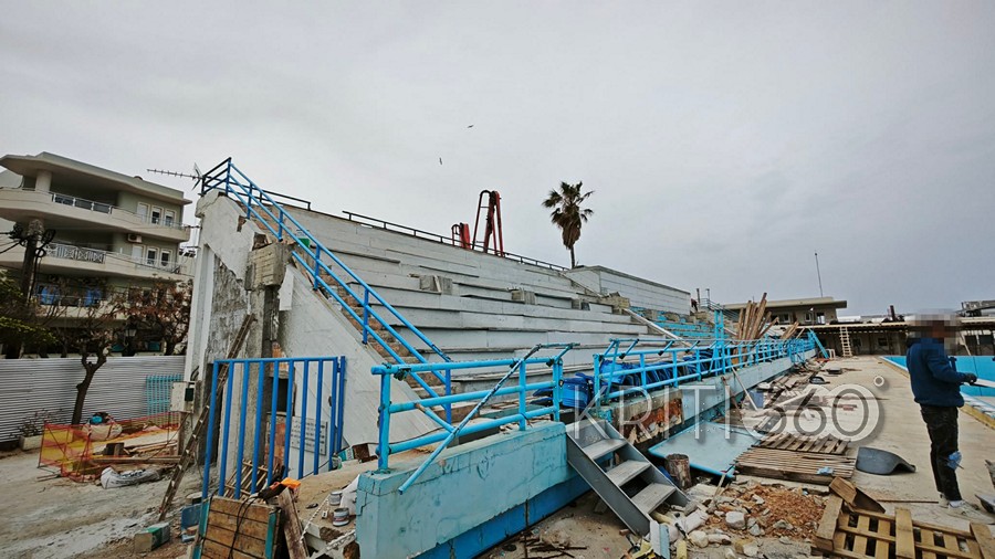 Συνεχίζονταν το πρωί της Τρίτης μετά το Πάσχα οι εργασίες ανακατασκευής του Κολυμβητηρίου Χανίων στη Νέα Χώρα.