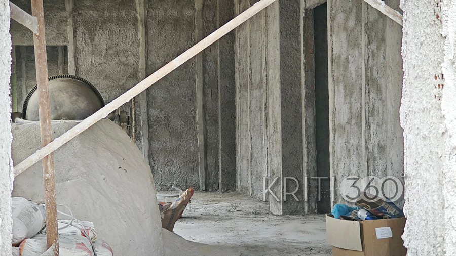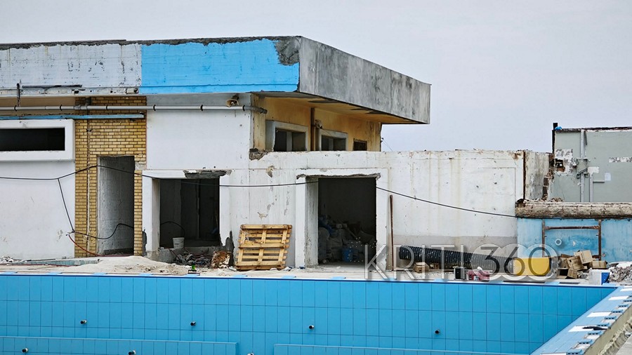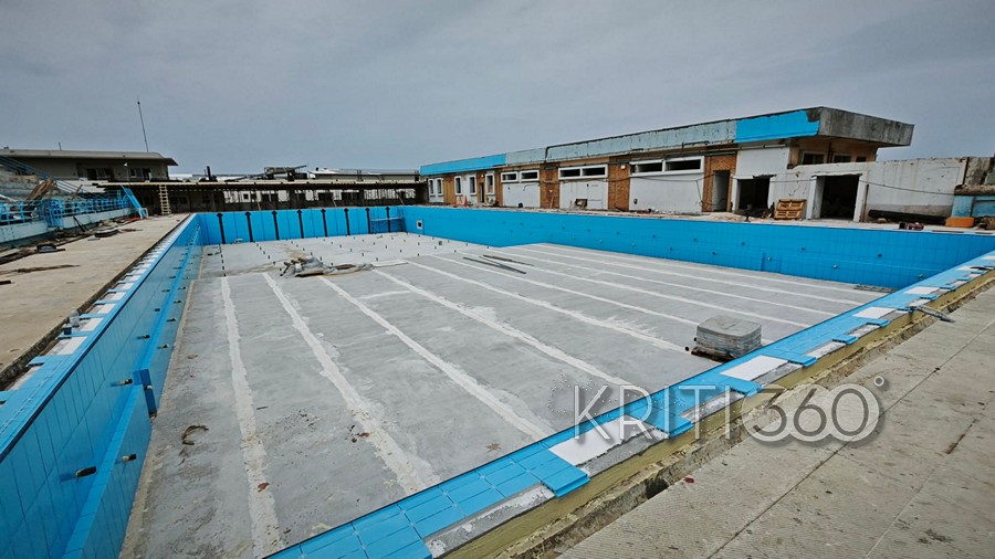 Το κολυμβητήριο είναι εργοτάξιο, με οικοδομικά υλικά σκόρπια στον χώρο.