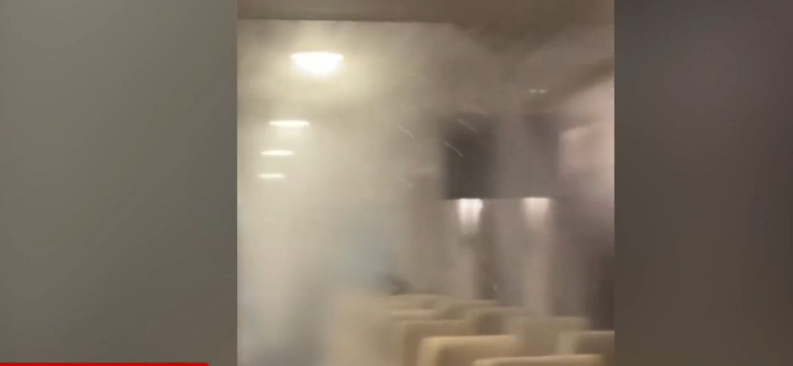 Όλα ξεκίνησαν όταν άναψαν τσιγάρο μέσα στην αίθουσα αναμονής, αγνοώντας τους κανόνες ασφαλείας. Όπως καταγράφηκε σε βίντεο-ντοκουμέντο, ο καπνός ενεργοποίησε αμέσως τους αισθητήρες πυρανίχνευσης. Μέσα σε δευτερόλεπτα, το αυτόματο σύστημα άρχισε να εκτοξεύει τεράστιες ποσότητες νερού παντού, αιφνιδιάζοντας το προσωπικό και τους ταξιδιώτες.
