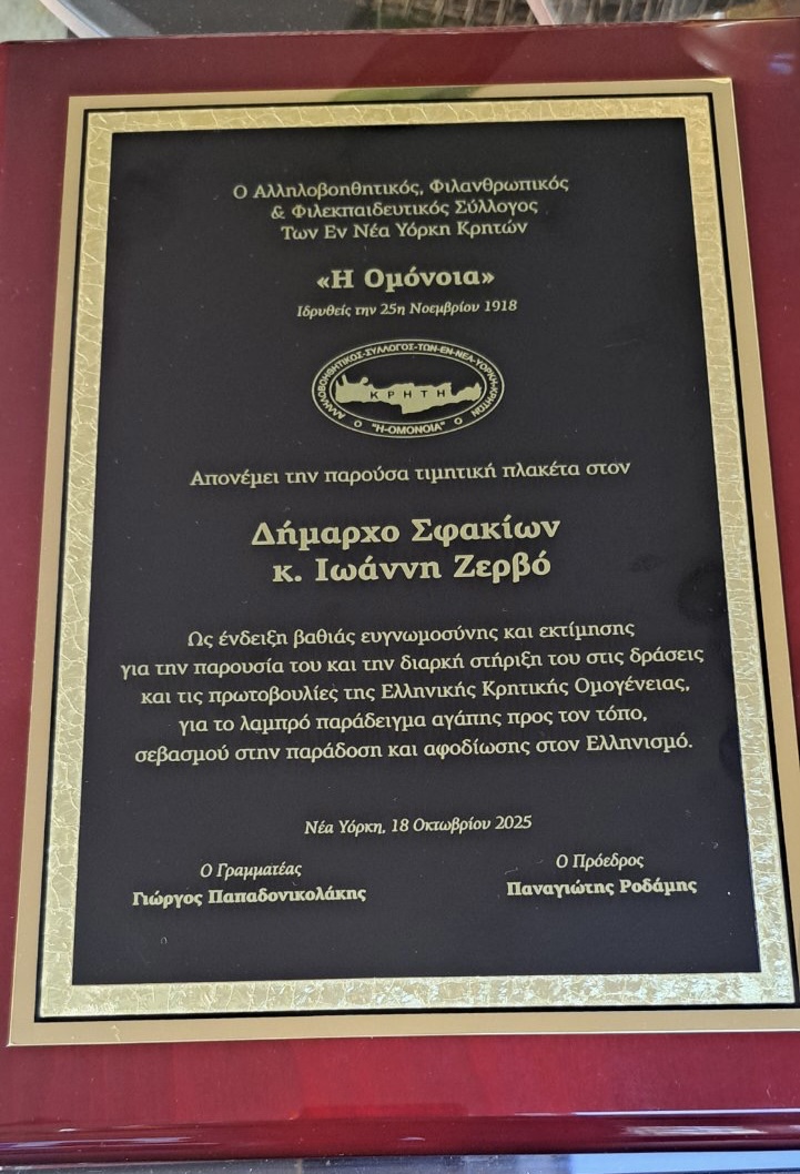 Συλλόγου Ομογενών Κρητών Νέας Υόρκης «Ομόνοια», πραγματοποίησε επίσκεψη στη Νέα
