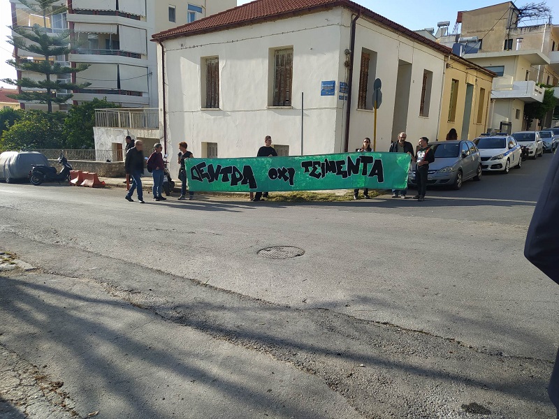 Απέξω από το στρατόπεδο πάντως βρίσκονταν συγκεντρωμένοι πολίτες με πανό κατά των σχεδίων αξιοποίησης του στρατοπέδου, διεκδικώντας χώρους πρασίνου.