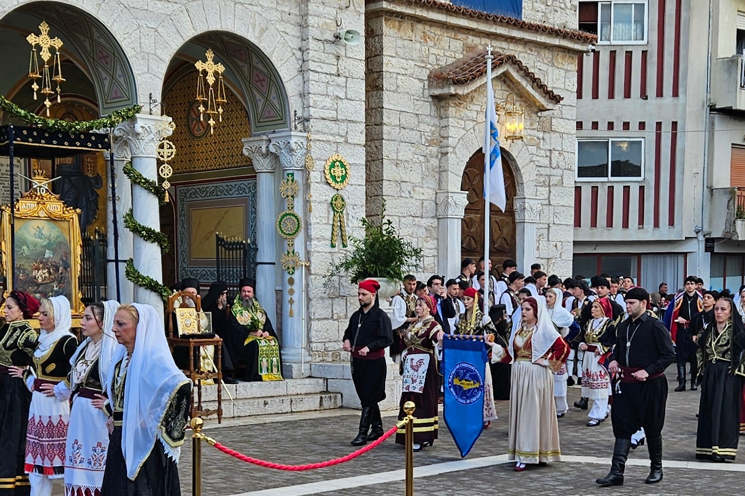 Το Λάβαρο του Παγκοσμίου Συμβουλίου Κρητών μπροστά από την Ιερή Εικόνα της Εξόδου
