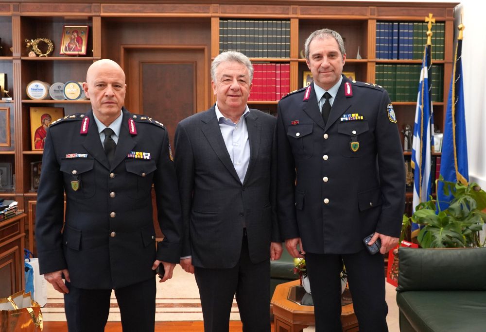 Ο νέος Γενικός Περιφερειακός Αστυνομικός Διευθυντής Κρήτης Υποστράτηγος Γεώργιος Δούκης και ο νέος Αστυνομικός Διευθυντής Ηρακλείου Ταξίαρχος Παρασκευάς Χηνόπουλος επισκέφθηκαν σήμερα Πέμπτη τον Περιφερειάρχη Κρήτης Σταύρο Αρναουτάκη.